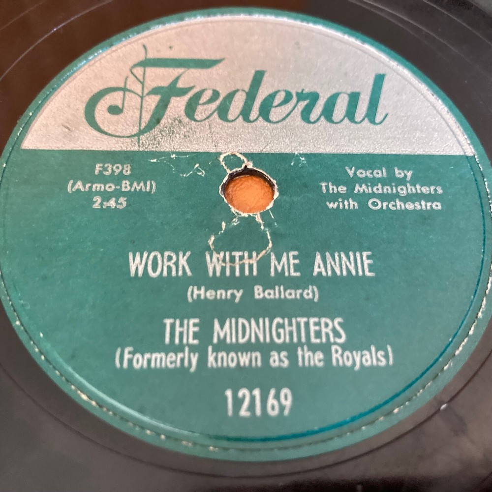 WORK WITH ME ANNIE The Midnighters Federal 12169 1954 • Untested 78 rpm 10" record • Professionally shipped in album mailer with inserts • Same-day shipping with tracking Buy in confidence from a trusted eBay seller with a 100% positive feedback rating since 2000.
