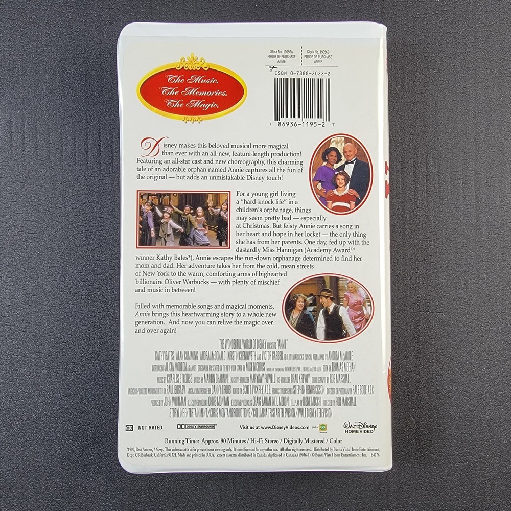 Walt Disney ANNIE VHS 19056 movie videotape children 1999 Kathy Bates Pictures are part of the description and should be viewed carefully prior to purchasing. Please refer to the images for further info on cosmetics and be sure to ask any questions you may have prior to bidding or purchasing. Thank you. THE ACTUAL ITEM SHOWN IN THE PHOTOS IS WHAT YOU WILL RECEIVE. Your order will be dispatched within 1 working day of receiving payment (Monday-Saturday) and you should expect to receive it Two or Five days after dispatch (for orders sent RM 1st Class). Returns If you are not 100% satisfied with your purchase, you can return the product and get a full refund. You can return a product for up to 30 days from the date you purchased it. Any product you return must be in the same condition you received it and in the original packaging. Please keep the receipt. Feedback Customer satisfaction is very important to us. If you have any problems with your order, please contact us and we do our best to make you satisfied, please do not leave a negative feedback before we resolve your problem. We guarantee that your issue will be solved as soon as possible.