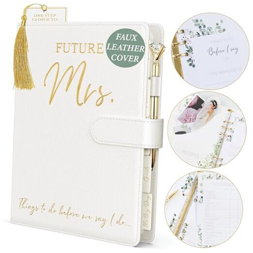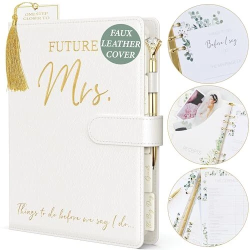 30 Days Return Policy Fast Delivery Trusted seller Wedding Planner Book and Organizer for The Bride -Faux Leather, Gold Foil 'Future Mrs' Wedding Binder I Includes Pen, Bookmark & Stickers I Engagement Gifts for Women I Wedding Planning Book Checklist Product Description ? AWARD-WINNING FAUX-LEATHER WEDDING PLANNER GIFT SET– reading "Future Mrs' and 'Things to do before we say I do" delicately etched with GOLD FOIL stamping. Set includes: matching GOLD PEN, BOOKMARK (reads: "one step closer to marrying my soulmate” & 3 X STICKERS. Open the cover to reveal the elegant GREEN LEAF design framing each worksheet & close your journal securely using the MAGNETIC STRAP. A perfect wedding planner book and organizer for the bride specifically designed for US weddings! ? STRESS-FREE WEDDING PLANNING Guide, Checklist & Notebook - Plan your wedding with ease as our wedding planning book and organizer contains easy to follow worksheets and must-know tips without being overwhelming. CONTENTS INCLUDE; 18m undated calendar, 12m checklist, budget tracker, guest lists, seating planner, vows, vendor contact logs and much more! ? BEST ENGAGEMENT GIFT FOR THE BRIDE TO BE - Watch her smile grow as she unwraps her engagement gift for women and runs her fingers over the soft pearl finish leather cover, knowing she can relax as her wedding planning journey just got a whole lot easier as you have gifted her one of the very few physical keepsake's of her big day! ?️ PRACTICAL WEDDING PLANNER BINDER - Add, remove or re-arrange your wedding planning notebook to suit you! Using the sleek golden open/close binder, so if you want to add neatly placed notes pages to the calendar section, you can! ✅ TRIED & TRUSTED BY THOUSANDS OF BRIDES – As a small US business, we genuinely care about providing a premium product and best service for customers. You can gift this in confidence knowing we are passionate about providing an exceptional experience. If you have any concerns, simply contact us and we'll make it right. Shipping Returns Payment Shipping Shipping is FREE to all addresses other than APO/PO boxes in the lower 48 states. All our stock ships from US-based warehouses. Shipped via USPS or UPS (depending on location and package weight) Unless stated otherwise, all orders will ship within 24-72 hours of your payment being processed. Check our feedback to see the great reviews of FAST shipping we offer. Returns As our valued customer, we will do our best to make sure the product you receive arrives to you on time and as expected. If you are not satisfied with your purchase, please contact us within 30 days of receiving your order to process a return. Payment We currently accept payment via eBay managed payments only. Once payment is cleared, we will dispatch your shipment within 1-3 business days. Please refer to the "Shipping" tab for more information regarding shipping speed to your destination.