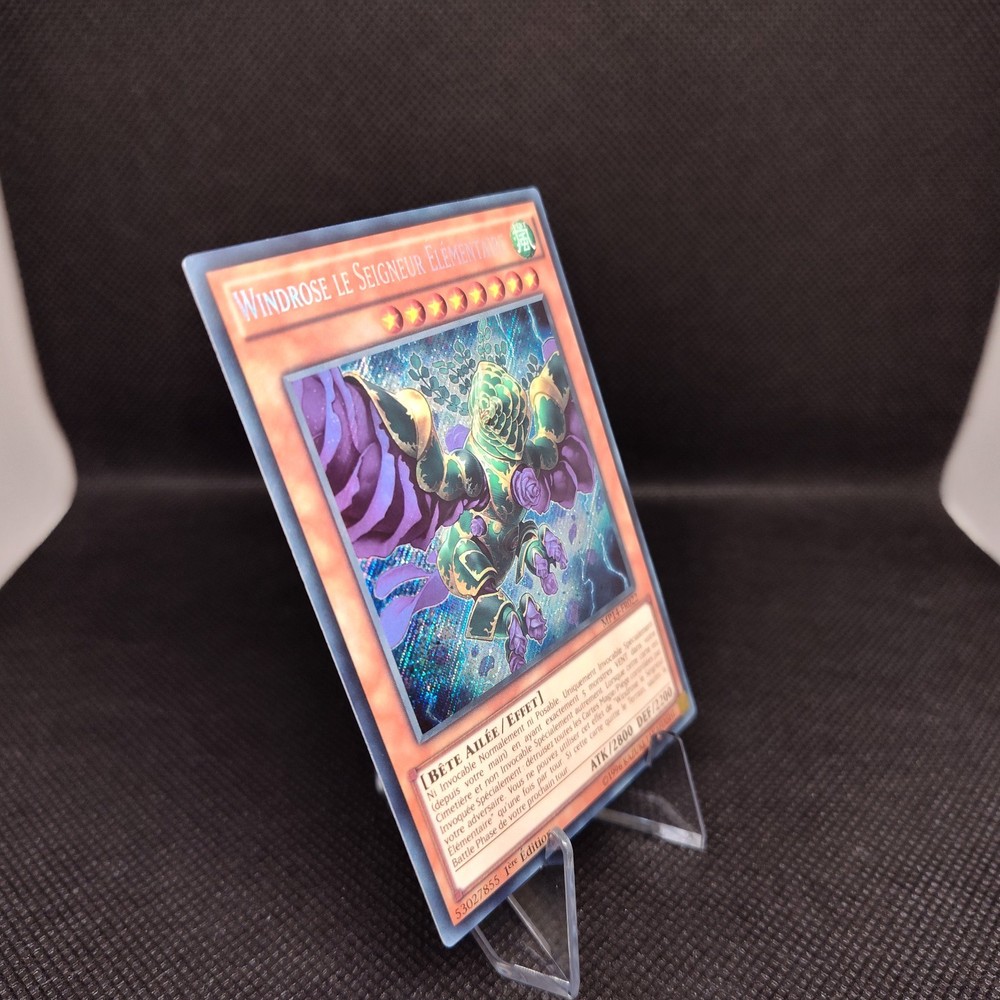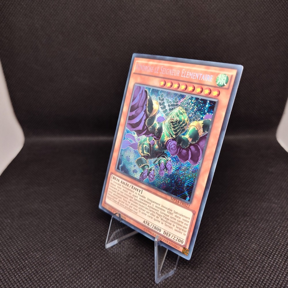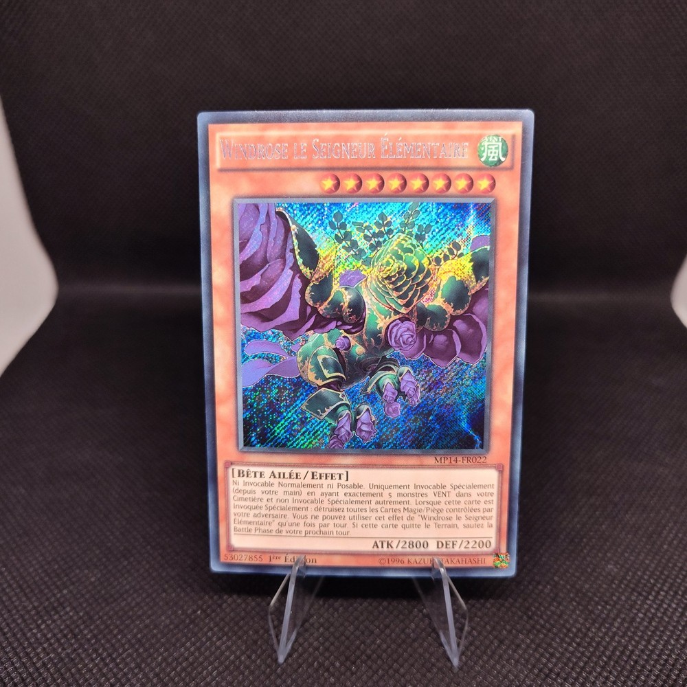 **Windrose le Seigneur Élémentaire [Foil] - MP14-FR022 (1st Edition)** Enhance your Yu-Gi-Oh! collection or deck with this **French Edition** of **Windrose le Seigneur Élémentaire**, a stunning holographic card from the 2014 Mega-Tins Mega Pack. This Level 5 WIND attribute **Bête Ailée / Effet** (Winged Beast / Effect) monster boasts an impressive **2800 ATK** and **2200 DEF**. Its powerful effect allows it to clear your opponent's Magic/Trap cards when Special Summoned, making it a strategic and visually captivating addition to any deck. This card is in **great condition**, perfect for collectors and players who appreciate rare finds. Don’t miss the opportunity to own this beautiful piece of Yu-Gi-Oh! history! French never surrenders! ;-) ( joking around )