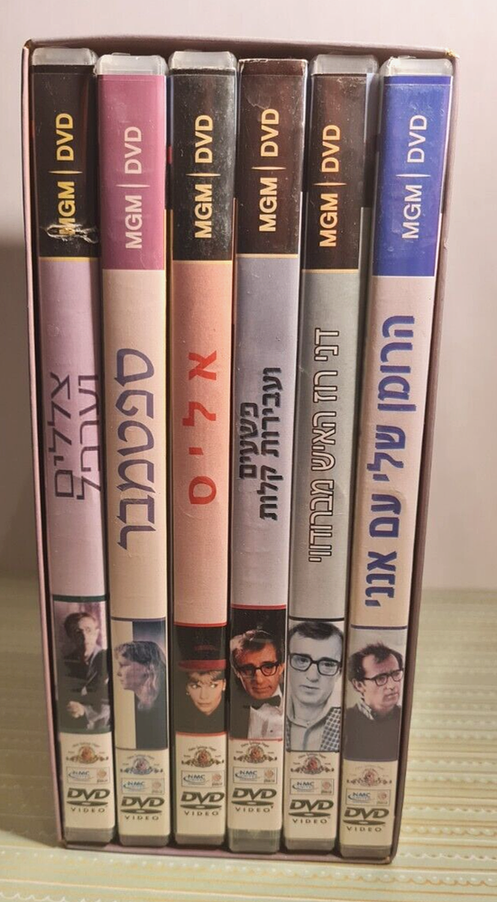 Woody Allen Collection 6 DVD MGM Movies Hebrew Subtitles Annie Alice September Danny Rose Broadway Crimes and Misdemeanors Shadows and Fog Good used condition Feel free to contact me if you have any questions Aren't you curious to see what other items I have in my store? Thank you for visiting!