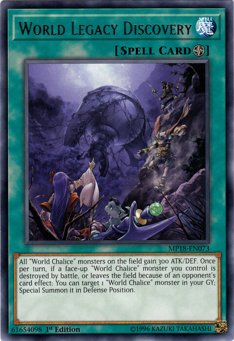 All "World Chalice" monsters on the field gain 300 ATK/DEF. Once