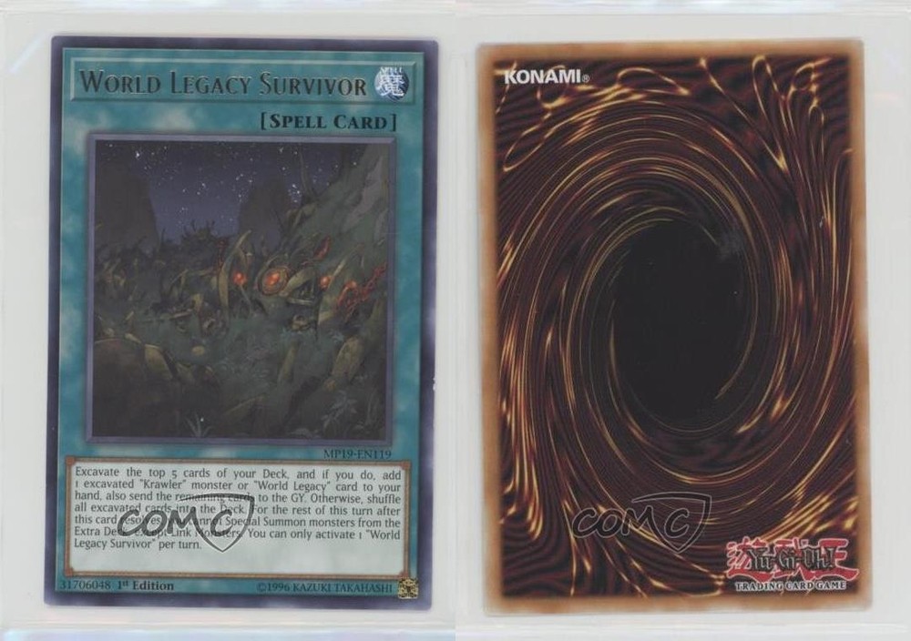 2019 Yu-Gi-Oh! Gold Sarcophagus Tin - Mega Pack [Base] - 1st Edition #MP19-EN119 World Legacy Survivor (R) COMC Item: 97705013 - YuGiOh Card - Featuring World Legacy Survivor Search for more: 2019 Yu-Gi-Oh! Gold Sarcophagus Tin Search for more: 2019 Yu-Gi-Oh! Gold Sarcophagus Tin - Mega Pack [Base] - 1st Edition View all of our Listings Auctions Buy It Now About Us Located in the beautiful Pacific Northwest, COMC (Check Out My Cards) is the world's largest consignment service for trading card singles. More than 10,000 people have used our consignment service to list over 50 million trading cards. Find out how we can help you consign your items on eBay by contacting us through eBay messaging. COMC -- "The Safe & Easy Way to Buy & Sell" Raw Condition for Modern Cards Unless otherwise noted, raw modern cards are listed in Near Mint-Mint condition or better. A NM-MT card appears to be Mint at first glance, but upon closer inspection, may exhibit some of the following: minor print defects (e.g. roller marks, print line, dimple), minor scratches, slight edge wear, and slight corner wear. Centering is clearly visible in the images provided and does not factor into our condition assessment. Raw Condition for Vintage Cards Unless otherwise noted, raw vintage cards are listed in Excellent condition or better. An EX card may exhibit some of the following: minor rounding of corners, surface wear, print defects, light scratches, and slight edge wear/chipping. Centering is clearly visible in the images provided and does not factor into our condition assessment. Domestic Shipping Combined shipping for multiple items is available. To receive combined shipping, please ensure all desired items are in your eBay shopping cart before proceeding to checkout. eBay limits orders to 40 items per order. We automatically combine multiple orders placed on the same day. If you place multiple orders on the same day, please contact us to request a refund of applicable shipping costs. Signature confirmation may be required on invoices over $400. All cards are protected and shipped securely. International Shipping COMC offers eBay's International Shipping (EIS) for international orders under $2,500* (see country exceptions below). All duties and import fees are paid at checkout; in the rare event that there are additional import fees upon delivery, these are borne by the buyer. EIS packages route through a shipping hub in Erlanger, KY before shipping to their final destination. Please note that EIS does not allow for combined shipments. The shipping rates are determined by eBay and cannot be adjusted. *Maximum sale price exceptions: Colombia, Kuwait ($2,000); Taiwan ($1,539); Chile, Costa Rica, Guatemala, Honduras, Trinidad and Tobago ($1,000); Antigua and Barbuda, Aruba, Belize, Dominica, Grenada, Philippines, Saint Kitts and Nevis, Saint Lucia, Montserrat, Turks and Caicos Islands ($500); Dominican Republic, El Salvador ($200). Please request a shipping quote through eBay messaging for orders that exceed the maximum sale price supported by eBay's International Shipping. You will be responsible for all duties and import fees for international orders shipped outside the EIS. All cards are protected and shipped securely. Payment COMC does not accept offers on our cards through our eBay storefront. COMC utilizes eBay’s managed payments system. If you are experiencing difficulties making a payment, please contact eBay for assistance. Return Policy Returns are only accepted on the rare occasion the item is not as described. If you are making a return, please initiate the return process through eBay so a mailing label can be provided for you. Prior to listing, our expert team carefully assessed this item to represent it accurately. Please review the description and high-definition images prior to purchasing to ensure this item meets your satisfaction. We welcome you to contact us if you have further questions about this item. Trust and Integrity COMC carefully assesses each item consigned to us to prevent fraudulent items from entering the marketplace. If you believe an item offered on COMC may be fraudulent, please contact us with details so we can investigate the issue. Items we determine are outside our supported items policy may be removed. Last Modified: 6/4/2025 2:44:43 AM PDT