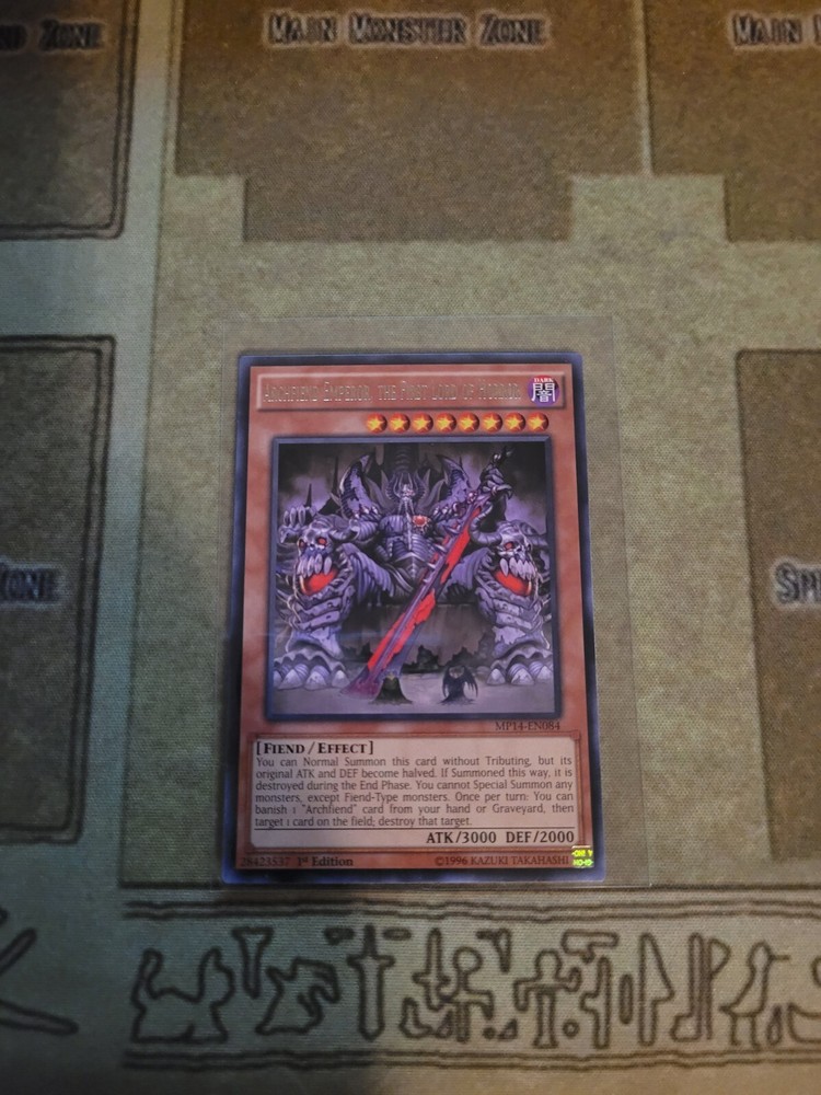 YUGIOH TCG ARCHFIEND EMPEROR THE FIRST LORD OF HORROR MP14-EN084 RARE 1ST EDITION NEAR MINT YOU GET WHATS SHOWN IN THE PICTURE AND DESCRIPTION ALL CARDS ARE SHIP WITH PROECTIONS. ALL CARDS THAT IS BELOW 20$ WELL BE SHIP IN PWE WITH EBAY TRACKING. 24$-21$ CARDS WELL BE WITH STAMPS PWE. CARDS ABOVE 25$ WELL BE SHIP IN BUBBLE MAIL WITH USPS GROUND SHIPPING TRACKING. IF YOUR ORDERS ADDS UP TO 25$ OR ABOVE IT WOULD BE ALSO IN A BUBBLE MAILER. IF YOU ARE FROM PUERTO RICO AND ARE BUYING MAKE SURE YOU HAVE "COUNTRY LIST AS UNITED STATES NOT PRI" OR ELSE I CAN'T PRINT EBAYSHIPPING LABEL WITH TRACKING AND WELL SENT ITEM BY STAMPS TO YOU. THANKS. To international buyers since I have been having many buyers that are using Fright Forward Services. YOU ARE BUYING AT YOUR OWN RISK. As I list in my description, I ship using PWE (Plain White Envelope) for cards that does not reach $25 and above. I do not know how the Fright Services pack it after mailing it to them. All I know is that many of the PWE does not make it to its original destination (your real home address) either it's the Fright Services fault for not packing it in bubble mailer or Usps for losing it in transit. If it is being send by PWE by the Fright Services, it made take months before getting there. Also, in case if its lost or does not make it to its destination you must direct your attention to the Fright Services before contacting me. It is not my responsibly for lost mail(item) due to 3rd party delivery. To make sure you get your cards to you faster and more accuracy you must order cards combining to $25 or above that way I can use Ground Advantage and send it in bubble mailer most of the bubble mailer I use will make it to its destination. Thank you. *UPDATED* REFER TO MY STORE PAGE 4/15/2025. IF YOU CAN LEAVE FEEDBACKS THAT WOULD BE MUCH APPRECIATE THANK YOU FOR BUYING.