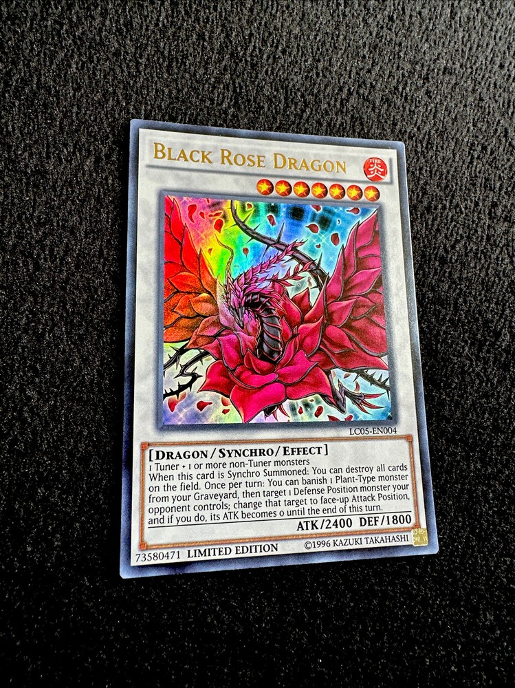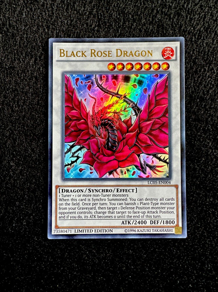 🔥 YUGIOH • BLACK ROSE DRAGON • ULTRA RARE • LC05-EN004 • LIMITED/E • NM/M • Card Sleeve Included + Top Loader •Never Play Near Mint or Mint card • Authentic Konami USA Version YOU ARE GUARANTEED TO GET THE CARD NAMED IN THE TITLE. Thank you.
