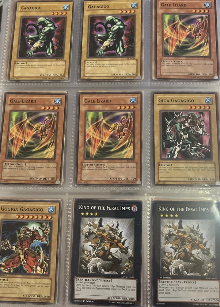 YU-GI-OH CARDS (SPELLCASTER AND REPTILE MONSTER CARDS) allows you to choose specific cards to complete your deck. The cards are from various sets and feature 1st Edition rarity, holos, and common. These Monster cards are from the Yu-Gi-Oh! card game and can be selected based on your preferences for character and card type. All cards are in what I believe to be excellent condition, they are all used and show some small wear. A couple would be considered okay, nothing worse than that. Hopefully you can get an idea from the photo provided.