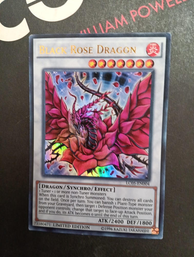 This limited edition YUGIOH card features the Black Rose Dragon, an effect type monster with a unique ability to attack itself. The card is from the Yugi set and has a rarity of Amazing Rare. It is also a 1st edition card with a regular finish and a basic stage. The card is made of aluminum material and has been autographed by 5ban Graphics, with authentication by the Professional Sports Authenticator (PSA). The card is in very light play (VLP) condition and has been well-maintained. It is a great addition to any Yu-Gi-Oh! TCG collection. Very Lightly Played fast shipping.