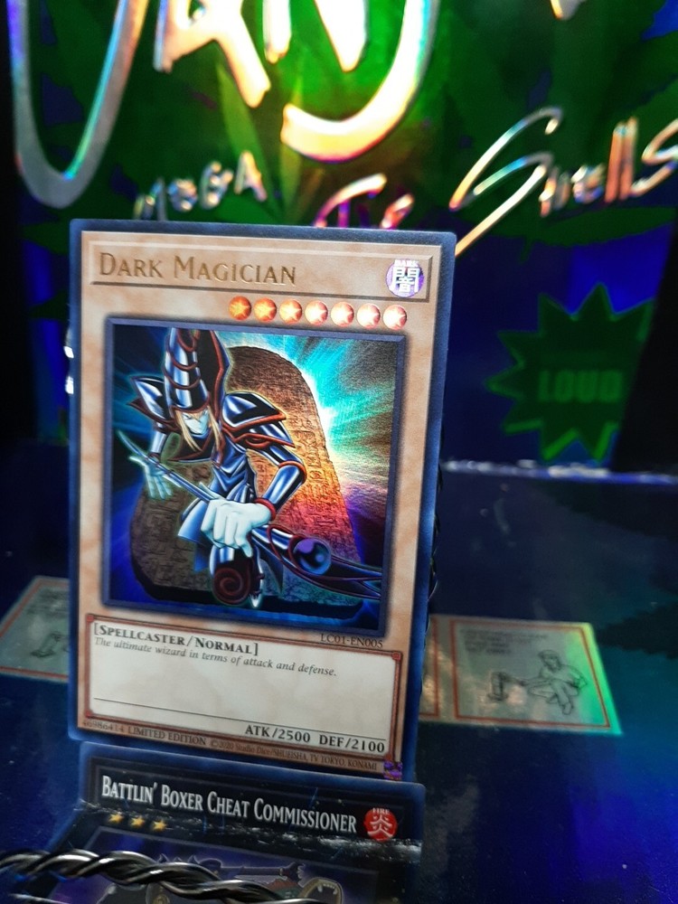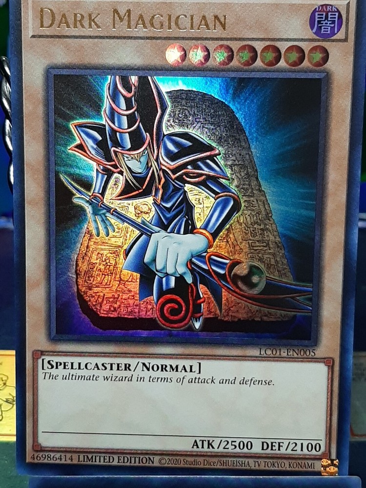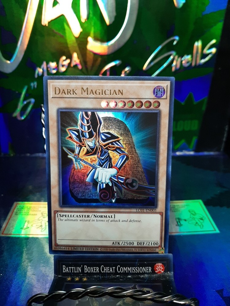 The product is a "Dark Magician" card from the Yu-Gi-Oh! TCG, specifically from the 2021 Tin of Ancient Battles set. This Ultra Rare card features a Holographic finish, making it highly sought after by collectors. Manufactured by Konami, the card is a 1st Edition with card number LC01-EN005, making it a limited edition collectible. This Dark Magician card is a valuable addition to any Yu-Gi-Oh! card collection.