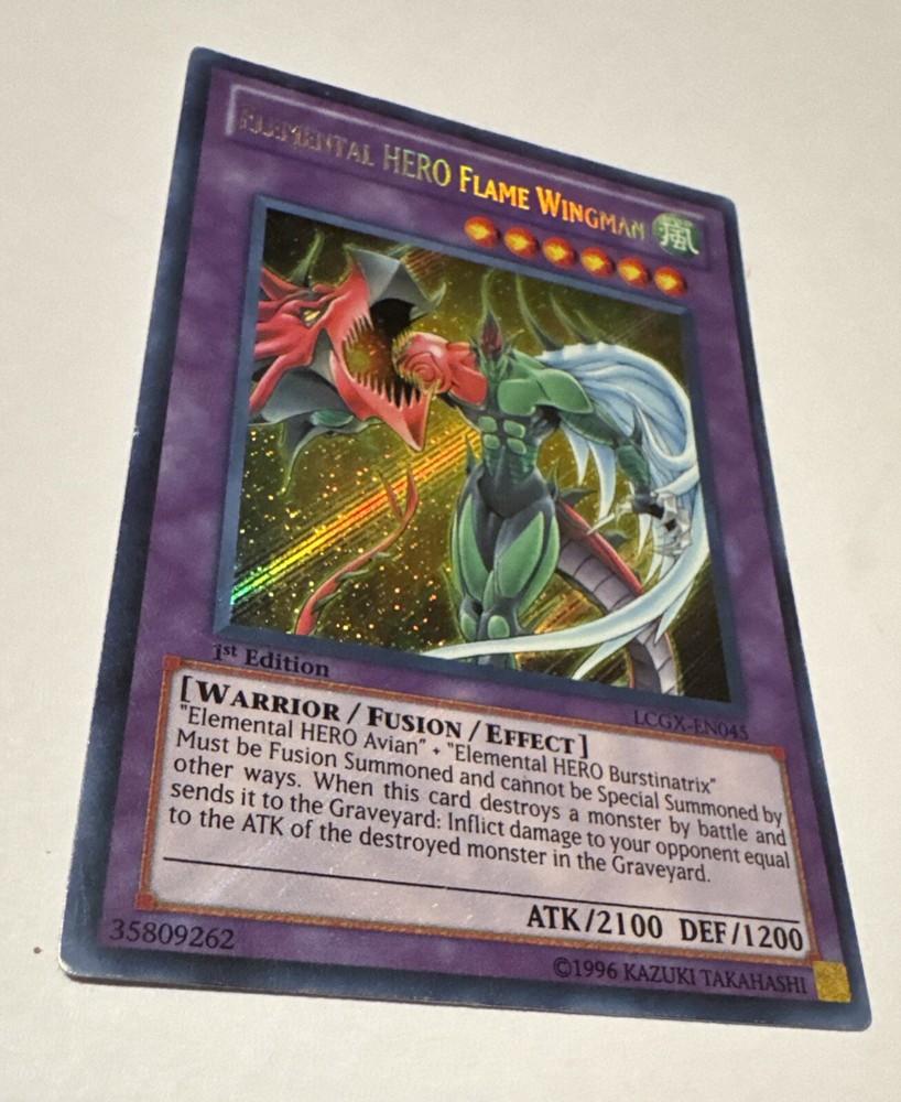 Elemental HERO Flame Wingman - Legendary Collection 2 (LC02) Product Details Number: LCGX-EN045 Rarity: Secret Rare Attribute Monster Type/Card Type: WIND / Level: 0 A / D: 0 / 0...