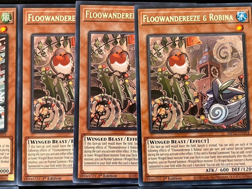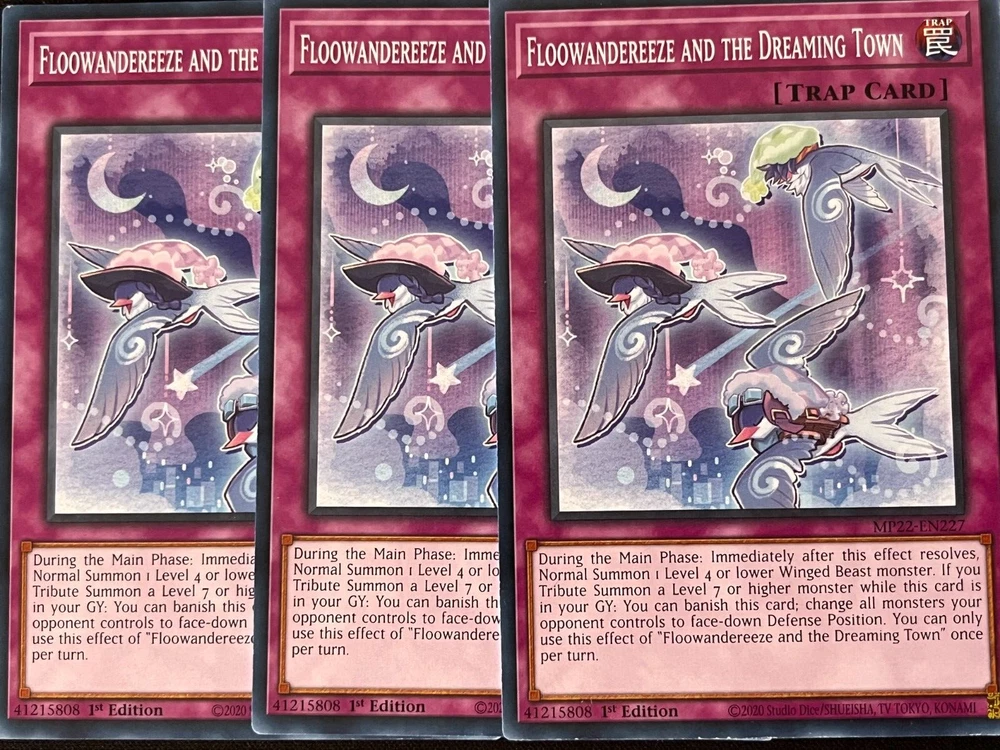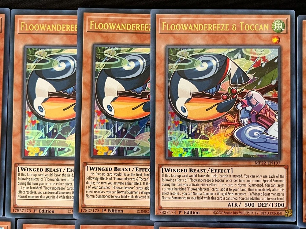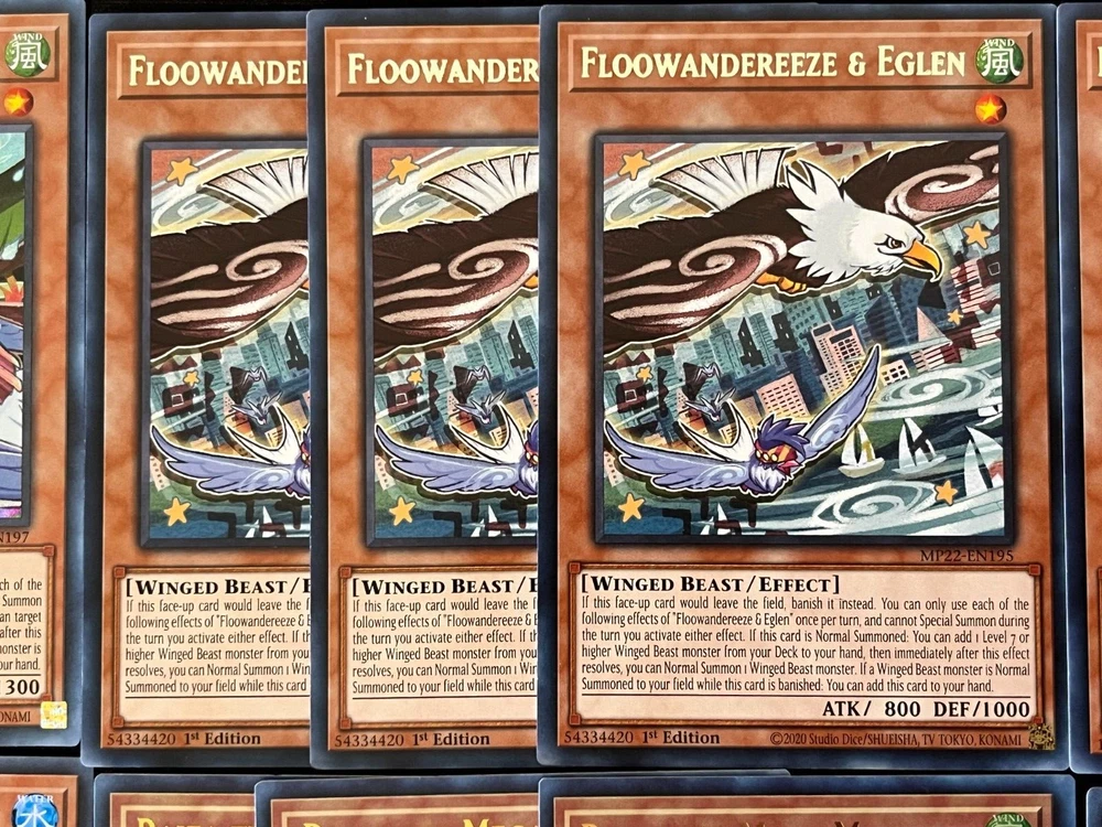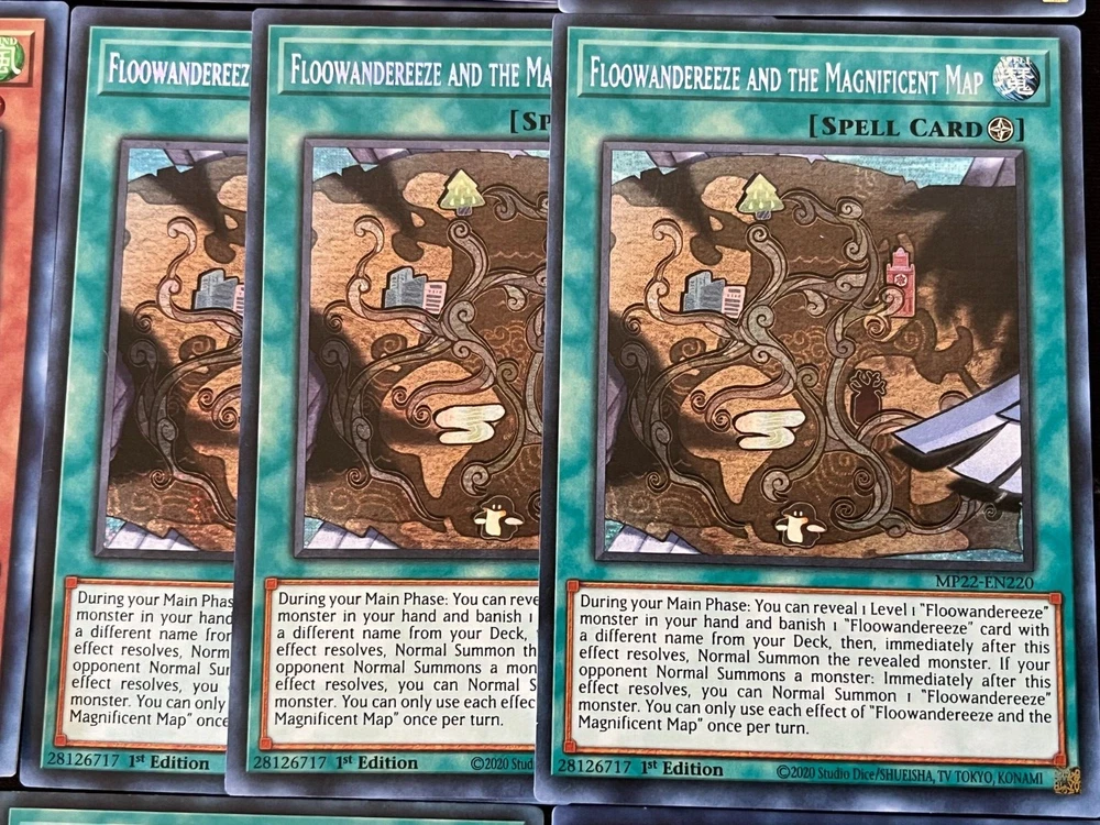 MONSTERS: 3X FLOOWANDEREEZE & EMPEN (SUPER RARE) 3X FLOOWANDEREEZE & TOCCAN (ULTRA RARE) 3X FLOOWANDEREEZE & EGLEN (RARE) 3X FLOOWANDEREEZE & ROBINA (RARE) 3X FLOOWANDEREEZE & SNOWL (RARE) 3X FLOOWANDEREEZE & STRI (SUPER RARE) 3X RAIZA THE MEGA MONARCH (ULTRA RARE) SPELLS: 3X FLOOWANDEREEZE AND THE MAGNIFICENT MAP (SECRET RARE) 3X FLOOWANDEREEZE AND THE UNEXPLORED WINDS (RARE) 3X POT OF DUALITY (RARE) 3X COSMIC CYCLONE (COMMON) 1X TERRAFORMING (COMMON) 1X ENEMY CONTROLLER (RARE) TRAPS: 3X FLOOWANDEREEZE AND THE DREAMING TOWN (COMMON) 3X FLOOWANDEREEZE AND THE SCARY SEA (COMMON) 3X CALL OF THE HAUNTED (COMMON) 3X COMPULSORY EVACUATION DEVICE (RARE)