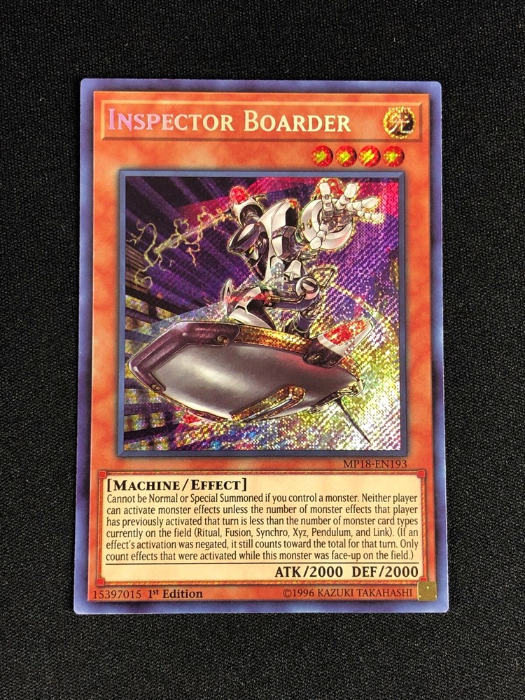 YUGIOH INSPECTOR BOARDER MP18-EN193 1ST SECRET ALL CARDS IN THIS AUCTION ARE IN NEAR MINT TO MINT CONDITION UNLESS STATED OTHERWISE IN THE TITLE. AND, YOU ARE GUARANTEED TO RECEIVE THE CARD NAMED IN THE TITLE. PLEASE NOTE, IF THERE'S MORE THAN 1 COPY AVAILABLE, YOU MAY NOT RECIEVE THE SAME EXACT CARD IN THE PHOTO. HOWEVER, IT WILL BE THE SAME EXACT CARD IN THE TITLE, AND DESCRIPTION! PLEASE CONTACT ME IF THERE IS ANYTHING WRONG WITH YOUR ORDER OR SHIPPING BEFORE LEAVING FEEDBACK. PLEASE GIVE ME A CHANCE TO FIX ANY PROBLEM YOU MAY HAVE. THANK YOU! Shipping Information: Shipping and Handling for this auction will be Free inside the United States - With Tracking! International Shipping Available Through Ebay’s Global Shipping Program. (BUYER IS RESPONSIBLE FOR ANY TAX) **Read the TITLE to see the condition of the cards Before you place a bid. Any damaged cards will be listed as such In The Title (FOR EXAMPLE: Blue Eyes White Dragon LOB-001 - Play/Edgewear). If it doesn't say anything about damage, it is in near-mint to mint condition. If you have any questions, message me Before you place your bid.** RETURN POLICY: RETURNS ARE ACCEPTED IF THE ITEM ARRIVES DAMAGED, OR NOT AS DESCRIBED. RETURNS ARE NOT ACCEPTED FOR BUYERS REMORSE. CHECK OUT MY OTHER AUCTIONS! _gsrx_vers_1516 (GS 9.3 (1516))