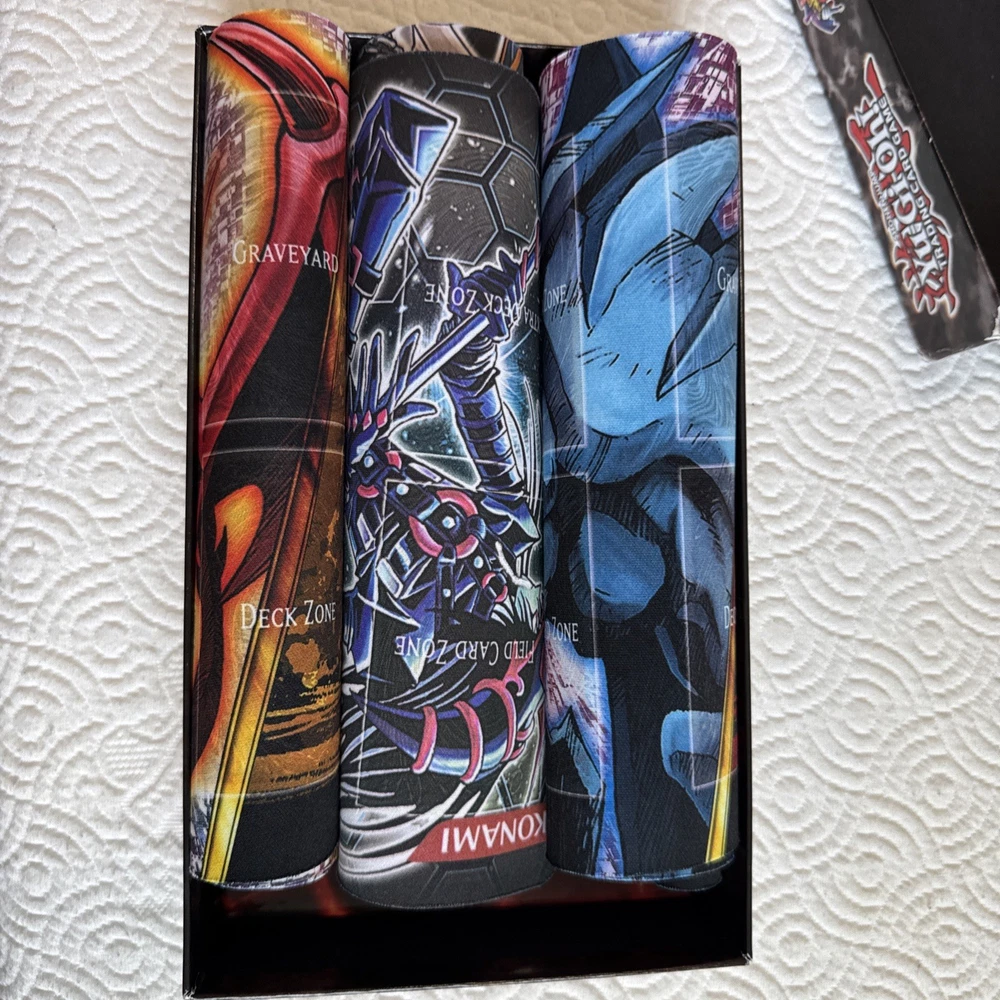 For all the Yu-Gi-Oh! TCG collectors and enthusiasts, here's a great opportunity to enhance your collection. This Legendary Collection 4: Joey's World box contains 3 mats and a board, perfect for playing a game with friends or family. The box is in excellent condition and has never been used. The set is manufactured by Konami, a renowned brand in the collectible card games industry. This configuration pack is ideal for those who want to experience the thrill of the game without worrying about the condition of the cards. Get your hands on this rare item today and enjoy hours of fun with your friends! Smoke free pet free home adult owned comes with box 3 play mats and the game board no cards or tokens