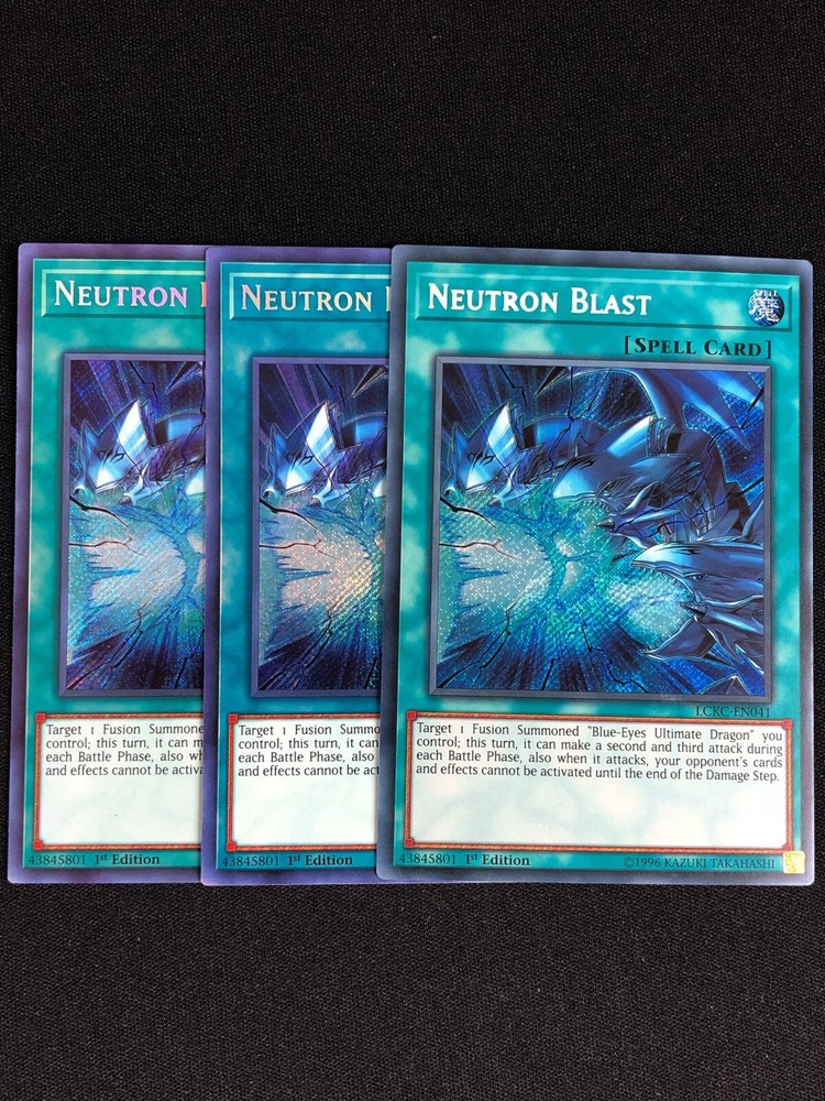 YUGIOH NEUTRON BLAST LCKC-EN041 1ST SECRET X3 ALL CARDS IN THIS AUCTION ARE IN NEAR MINT TO MINT CONDITION UNLESS STATED OTHERWISE IN THE TITLE. AND, YOU ARE GUARANTEED TO RECEIVE THE CARD NAMED IN THE TITLE. PLEASE NOTE, IF THERE'S MORE THAN 1 COPY AVAILABLE, YOU MAY NOT RECIEVE THE SAME EXACT CARD IN THE PHOTO. HOWEVER, IT WILL BE THE SAME EXACT CARD IN THE TITLE, AND DESCRIPTION! PLEASE CONTACT ME IF THERE IS ANYTHING WRONG WITH YOUR ORDER OR SHIPPING BEFORE LEAVING FEEDBACK. PLEASE GIVE ME A CHANCE TO FIX ANY PROBLEM YOU MAY HAVE. THANK YOU! Shipping Information: Shipping and Handling for this auction will be Free inside the United States - With Tracking! International Shipping Available Through Ebay’s Global Shipping Program. (BUYER IS RESPONSIBLE FOR ANY TAX) **Read the TITLE to see the condition of the cards Before you place a bid. Any damaged cards will be listed as such In The Title (FOR EXAMPLE: Blue Eyes White Dragon LOB-001 - Play/Edgewear). If it doesn't say anything about damage, it is in near-mint to mint condition. If you have any questions, message me Before you place your bid.** RETURN POLICY: RETURNS ARE ACCEPTED IF THE ITEM ARRIVES DAMAGED, OR NOT AS DESCRIBED. RETURNS ARE NOT ACCEPTED FOR BUYERS REMORSE. CHECK OUT MY OTHER AUCTIONS! _gsrx_vers_1516 (GS 9.3 (1516))