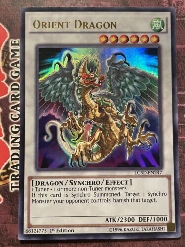 YUGIOH ORIENT DRAGON LC5D-EN247 1ST ULTRA (NM) ALL CARDS IN THIS AUCTION ARE IN NEAR MINT TO MINT CONDITION UNLESS STATED OTHERWISE IN THE TITLE. AND, YOU ARE GUARANTEED TO RECEIVE THE CARD NAMED IN THE TITLE. PLEASE NOTE, IF THERE'S MORE THAN 1 COPY AVAILABLE, YOU MAY NOT RECIEVE THE SAME EXACT CARD IN THE PHOTO. HOWEVER, IT WILL BE THE SAME EXACT CARD IN THE TITLE, AND DESCRIPTION! PLEASE CONTACT ME IF THERE IS ANYTHING WRONG WITH YOUR ORDER OR SHIPPING BEFORE LEAVING FEEDBACK. PLEASE GIVE ME A CHANCE TO FIX ANY PROBLEM YOU MAY HAVE. THANK YOU! Shipping Information: Shipping and Handling for this auction will be Free inside the United States - With Tracking! International Shipping Available Through Ebay’s Global Shipping Program. (BUYER IS RESPONSIBLE FOR ANY TAX) **Read the TITLE to see the condition of the cards Before you place a bid. Any damaged cards will be listed as such In The Title (FOR EXAMPLE: Blue Eyes White Dragon LOB-001 (HP) If it doesn't say anything about damage, it is in near-mint to mint condition. If you have any questions, message me Before you place your bid.** *PLEASE READ* Ebay's Card Condition Guidelines: (NM) = Near mint or better Comparable to a fresh pack Flaws may include Minor corner and edge wear (LP) = Lightly played (Excellent) Has clearly visible signs of wear Flaws may include Moderate edge chipping Moderate surface scuffing Fuzzy corners (MP) = Moderately played (Very good) Has moderate-to-heavy damage all over Flaws may include Moderate discoloration Moderate creasing Moderate to heavy edge chipping Rounding and soft corner (HP) = Heavily played (Poor) Is extremely worn and displays flaws all over Heavily Played condition cards exhibit signs of heavy wear. Heavily Played condition cards may include cards that have significant creasing, folding, severe water damage, heavy whitening, heavy border wear, and/or tearing. RETURN POLICY: RETURNS ARE ACCEPTED IF THE ITEM ARRIVES DAMAGED, OR NOT AS DESCRIBED. RETURNS ARE NOT ACCEPTED FOR BUYERS REMORSE. CHECK OUT MY OTHER AUCTIONS! _gsrx_vers_1680 (GS 9.8.3 (1680))