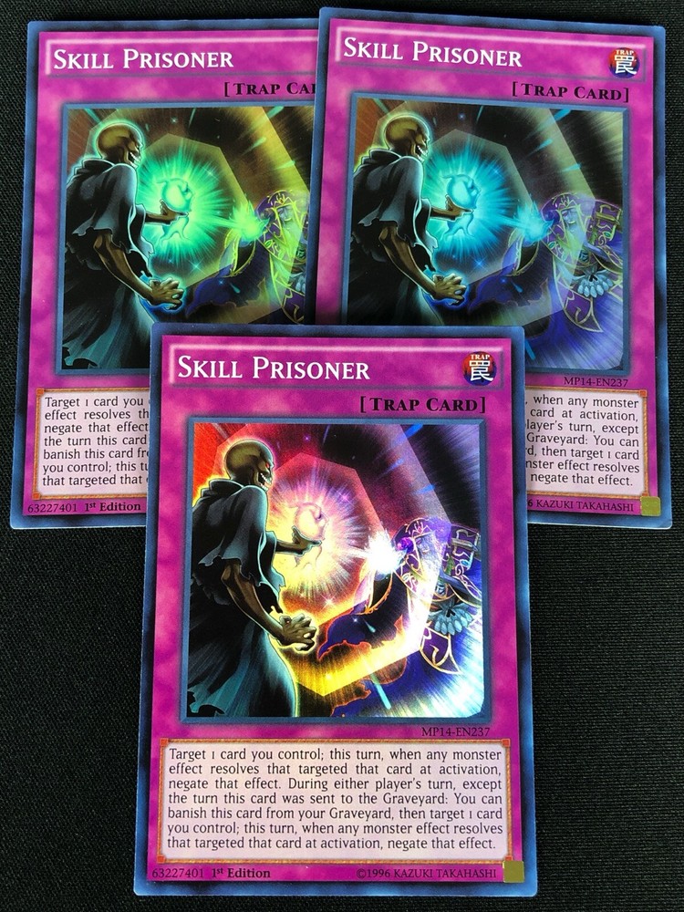 YUGIOH SKILL PRISONER MP14-EN237 1ST SUPER X3 (NM) ALL CARDS IN THIS AUCTION ARE IN NEAR MINT TO MINT CONDITION UNLESS STATED OTHERWISE IN THE TITLE. AND, YOU ARE GUARANTEED TO RECEIVE THE CARD NAMED IN THE TITLE. PLEASE NOTE, IF THERE'S MORE THAN 1 COPY AVAILABLE, YOU MAY NOT RECIEVE THE SAME EXACT CARD IN THE PHOTO. HOWEVER, IT WILL BE THE SAME EXACT CARD IN THE TITLE, AND DESCRIPTION! PLEASE CONTACT ME IF THERE IS ANYTHING WRONG WITH YOUR ORDER OR SHIPPING BEFORE LEAVING FEEDBACK. PLEASE GIVE ME A CHANCE TO FIX ANY PROBLEM YOU MAY HAVE. THANK YOU! Shipping Information: Shipping and Handling for this auction will be Free inside the United States - With Tracking! International Shipping Available Through Ebay’s Global Shipping Program. (BUYER IS RESPONSIBLE FOR ANY TAX) **Read the TITLE to see the condition of the cards Before you place a bid. Any damaged cards will be listed as such In The Title (FOR EXAMPLE: Blue Eyes White Dragon LOB-001 (HP) If it doesn't say anything about damage, it is in near-mint to mint condition. If you have any questions, message me Before you place your bid.** *PLEASE READ* Ebay's Card Condition Guidelines: (NM) = Near mint or better Comparable to a fresh pack Flaws may include Minor corner and edge wear (LP) = Lightly played (Excellent) Has clearly visible signs of wear Flaws may include Moderate edge chipping Moderate surface scuffing Fuzzy corners (MP) = Moderately played (Very good) Has moderate-to-heavy damage all over Flaws may include Moderate discoloration Moderate creasing Moderate to heavy edge chipping Rounding and soft corner (HP) = Heavily played (Poor) Is extremely worn and displays flaws all over Heavily Played condition cards exhibit signs of heavy wear. Heavily Played condition cards may include cards that have significant creasing, folding, severe water damage, heavy whitening, heavy border wear, and/or tearing. RETURN POLICY: RETURNS ARE ACCEPTED IF THE ITEM ARRIVES DAMAGED, OR NOT AS DESCRIBED. RETURNS ARE NOT ACCEPTED FOR BUYERS REMORSE. CHECK OUT MY OTHER AUCTIONS! _gsrx_vers_1680 (GS 9.8.3 (1680))