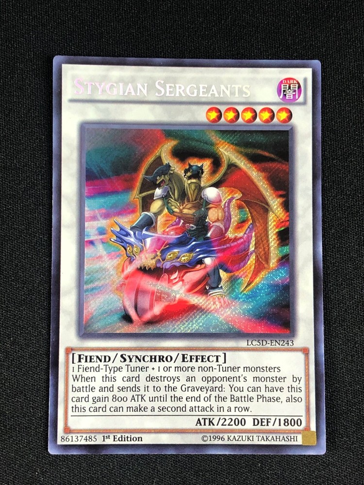 This Stygian Sergeants Secret Rare is a must-have for any Yu-Gi-Oh! collector! The card arrived in perfect mint condition, just as described. The seller is super reliable—quick shipping and great communication. If you're looking for a high-quality, authentic card, this is it! Highly recommended for competitive play or adding to your collection.