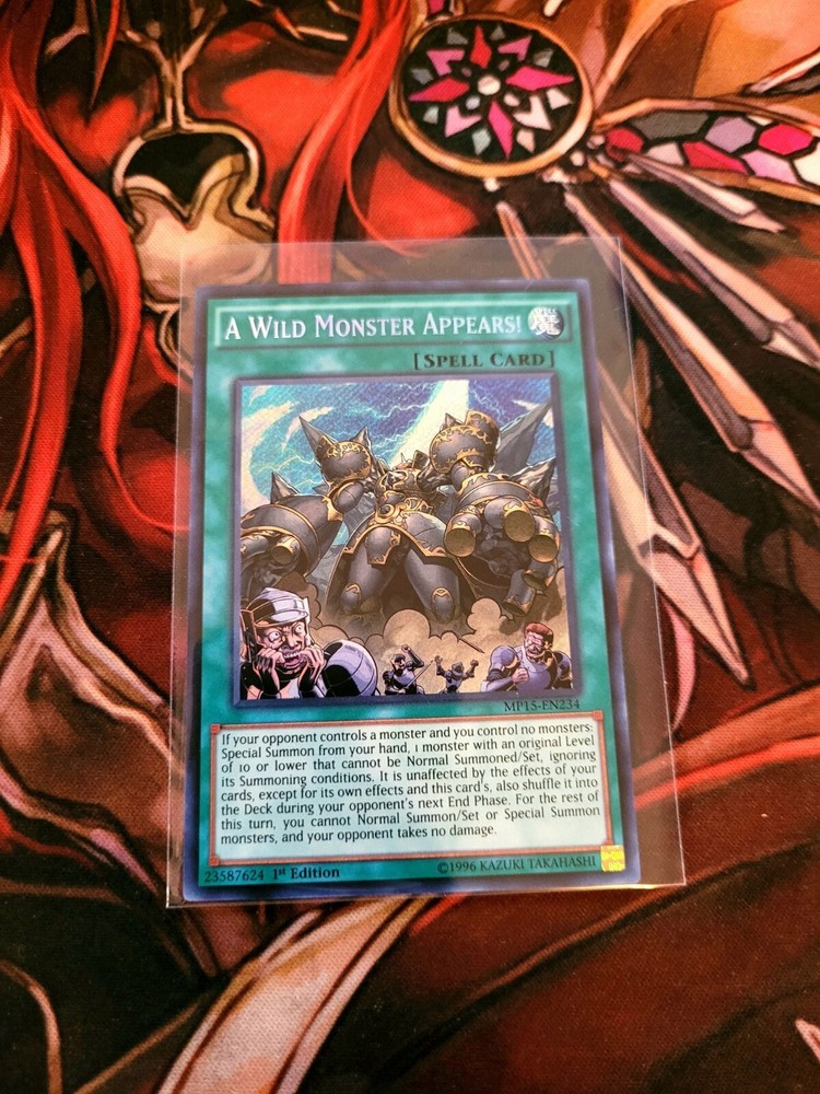 YUGIOH TCG A WILD MONSTERS APPEARS! MP15-EN234 SECRET 1ST EDITION NEAR MINT YOU GET WHATS SHOWN IN THE PICTURE AND DESCRIPTION ALL CARDS ARE SHIP WITH PROECTIONS. ALL CARDS THAT IS BELOW 20$ WELL BE SHIP IN PWE WITH EBAY TRACKING. 24$-21$ CARDS WELL BE WITH STAMPS PWE. CARDS ABOVE 25$ WELL BE SHIP IN BUBBLE MAIL WITH USPS GROUND SHIPPING TRACKING. IF YOUR ORDERS ADDS UP TO 25$ OR ABOVE IT WOULD BE ALSO IN A BUBBLE MAILER. IF YOU ARE FROM PUERTO RICO AND ARE BUYING MAKE SURE YOU HAVE "COUNTRY LIST AS UNITED STATES NOT PRI" OR ELSE I CAN'T PRINT EBAYSHIPPING LABEL WITH TRACKING AND WELL SENT ITEM BY STAMPS TO YOU. THANKS. To international buyers since I have been having many buyers that are using Fright Forward Services. YOU ARE BUYING AT YOUR OWN RISK. As I list in my description, I ship using PWE (Plain White Envelope) for cards that does not reach $25 and above. I do not know how the Fright Services pack it after mailing it to them. All I know is that many of the PWE does not make it to its original destination (your real home address) either it's the Fright Services fault for not packing it in bubble mailer or Usps for losing it in transit. If it is being send by PWE by the Fright Services, it made take months before getting there. Also, in case if its lost or does not make it to its destination you must direct your attention to the Fright Services before contacting me. It is not my responsibly for lost mail(item) due to 3rd party delivery. To make sure you get your cards to you faster and more accuracy you must order cards combining to $25 or above that way I can use Ground Advantage and send it in bubble mailer most of the bubble mailer I use will make it to its destination. Thank you. IF YOU CAN LEAVE FEEDBACKS THAT WOULD BE MUCH APPRECIATE THANK YOU FOR BUYING.