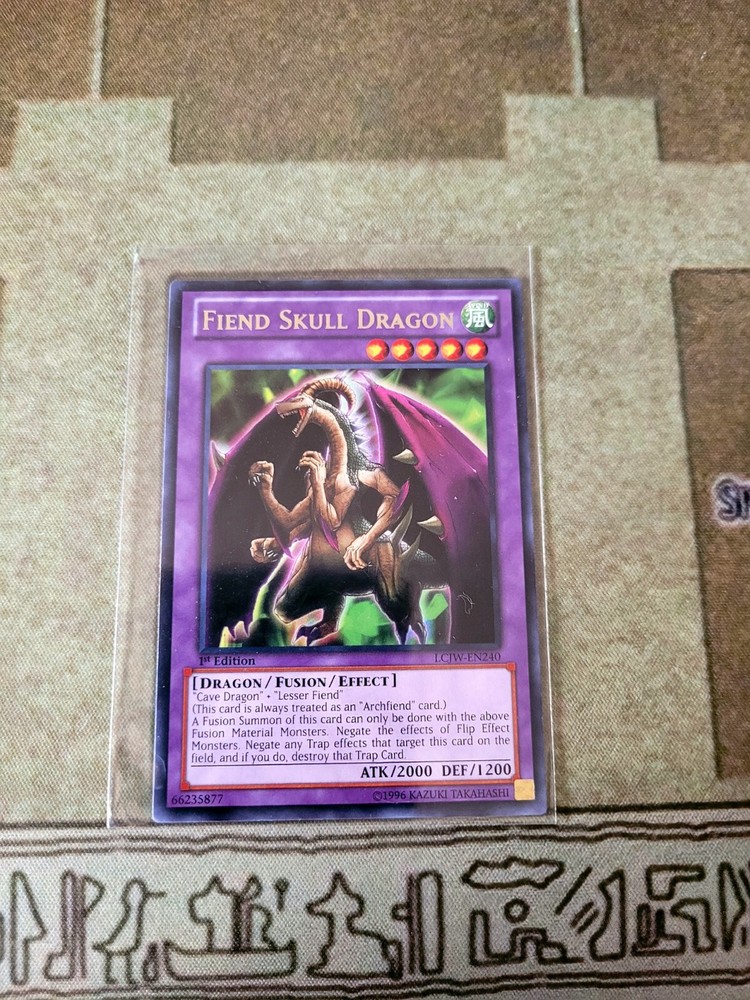YUGIOH TCG FIEND SKULL DRAGON LCJW-EN240 RARE 1ST EDITION NEAR MINT YOU GET WHATS SHOWN IN THE PICTURE AND DESCRIPTION ALL CARDS ARE SHIP WITH PROECTIONS. ALL CARDS THAT IS BELOW 20$ WELL BE SHIP IN PWE WITH EBAY TRACKING. 24$-21$ CARDS WELL BE WITH STAMPS PWE. CARDS ABOVE 25$ WELL BE SHIP IN BUBBLE MAIL WITH USPS GROUND SHIPPING TRACKING. IF YOUR ORDERS ADDS UP TO 25$ OR ABOVE IT WOULD BE ALSO IN A BUBBLE MAILER. IF YOU ARE FROM PUERTO RICO AND ARE BUYING MAKE SURE YOU HAVE "COUNTRY LIST AS UNITED STATES NOT PRI" OR ELSE I CAN'T PRINT EBAYSHIPPING LABEL WITH TRACKING AND WELL SENT ITEM BY STAMPS TO YOU. THANKS. To international buyers since I have been having many buyers that are using Fright Forward Services. YOU ARE BUYING AT YOUR OWN RISK. As I list in my description, I ship using PWE (Plain White Envelope) for cards that does not reach $25 and above. I do not know how the Fright Services pack it after mailing it to them. All I know is that many of the PWE does not make it to its original destination (your real home address) either it's the Fright Services fault for not packing it in bubble mailer or Usps for losing it in transit. If it is being send by PWE by the Fright Services, it made take months before getting there. Also, in case if its lost or does not make it to its destination you must direct your attention to the Fright Services before contacting me. It is not my responsibly for lost mail(item) due to 3rd party delivery. To make sure you get your cards to you faster and more accuracy you must order cards combining to $25 or above that way I can use Ground Advantage and send it in bubble mailer most of the bubble mailer I use will make it to its destination. Thank you. IF YOU CAN LEAVE FEEDBACKS THAT WOULD BE MUCH APPRECIATE THANK YOU FOR BUYING.