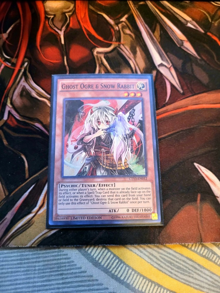 YUGIOH TCG GHOST OGRE SNOW RABBIT CT13-EN012 SUPER LIMITED EDITION NEAR MINT YOU GET WHATS SHOWN IN THE PICTURE AND DESCRIPTION ALL CARDS ARE SHIP WITH PROECTIONS. ALL CARDS THAT IS BELOW 20$ WELL BE SHIP IN PWE WITH EBAY TRACKING. 24$-21$ CARDS WELL BE WITH STAMPS PWE. CARDS ABOVE 25$ WELL BE SHIP IN BUBBLE MAIL WITH USPS GROUND SHIPPING TRACKING. IF YOUR ORDERS ADDS UP TO 25$ OR ABOVE IT WOULD BE ALSO IN A BUBBLE MAILER. IF YOU ARE FROM PUERTO RICO AND ARE BUYING MAKE SURE YOU HAVE "COUNTRY LIST AS UNITED STATES NOT PRI" OR ELSE I CAN'T PRINT EBAYSHIPPING LABEL WITH TRACKING AND WELL SENT ITEM BY STAMPS TO YOU. THANKS. To international buyers since I have been having many buyers that are using Fright Forward Services. YOU ARE BUYING AT YOUR OWN RISK. As I list in my description, I ship using PWE (Plain White Envelope) for cards that does not reach $25 and above. I do not know how the Fright Services pack it after mailing it to them. All I know is that many of the PWE does not make it to its original destination (your real home address) either it's the Fright Services fault for not packing it in bubble mailer or Usps for losing it in transit. If it is being send by PWE by the Fright Services, it made take months before getting there. Also, in case if its lost or does not make it to its destination you must direct your attention to the Fright Services before contacting me. It is not my responsibly for lost mail(item) due to 3rd party delivery. To make sure you get your cards to you faster and more accuracy you must order cards combining to $25 or above that way I can use Ground Advantage and send it in bubble mailer most of the bubble mailer I use will make it to its destination. Thank you. IF YOU CAN LEAVE FEEDBACKS THAT WOULD BE MUCH APPRECIATE THANK YOU FOR BUYING.
