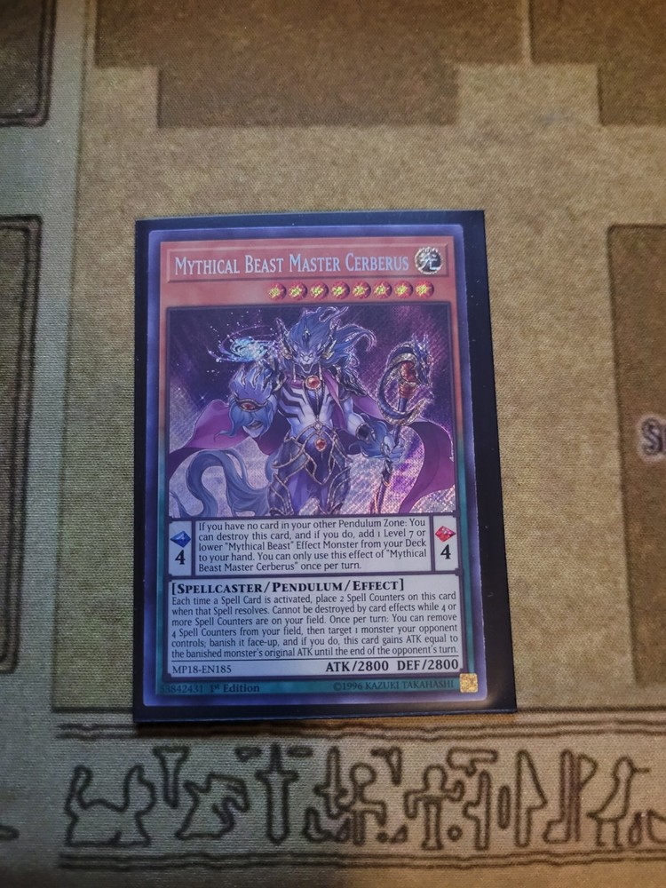 YUGIOH TCG MYTHICAL BEAST MASTER CERBERUS MP18-EN185 SECRET 1ST EDITION NEAR MINT YOU GET WHATS SHOWN IN THE PICTURE AND DESCRIPTION ALL CARDS ARE SHIP WITH PROECTIONS. ALL CARDS THAT IS BELOW 20$ WELL BE SHIP IN PWE WITH EBAY TRACKING. 24$-21$ CARDS WELL BE WITH STAMPS PWE. CARDS ABOVE 25$ WELL BE SHIP IN BUBBLE MAIL WITH USPS GROUND SHIPPING TRACKING. IF YOUR ORDERS ADDS UP TO 25$ OR ABOVE IT WOULD BE ALSO IN A BUBBLE MAILER. IF YOU ARE FROM PUERTO RICO AND ARE BUYING MAKE SURE YOU HAVE "COUNTRY LIST AS UNITED STATES NOT PRI" OR ELSE I CAN'T PRINT EBAYSHIPPING LABEL WITH TRACKING AND WELL SENT ITEM BY STAMPS TO YOU. THANKS. To international buyers since I have been having many buyers that are using Fright Forward Services. YOU ARE BUYING AT YOUR OWN RISK. As I list in my description, I ship using PWE (Plain White Envelope) for cards that does not reach $25 and above. I do not know how the Fright Services pack it after mailing it to them. All I know is that many of the PWE does not make it to its original destination (your real home address) either it's the Fright Services fault for not packing it in bubble mailer or Usps for losing it in transit. If it is being send by PWE by the Fright Services, it made take months before getting there. Also, in case if its lost or does not make it to its destination you must direct your attention to the Fright Services before contacting me. It is not my responsibly for lost mail(item) due to 3rd party delivery. To make sure you get your cards to you faster and more accuracy you must order cards combining to $25 or above that way I can use Ground Advantage and send it in bubble mailer most of the bubble mailer I use will make it to its destination. Thank you. IF YOU CAN LEAVE FEEDBACKS THAT WOULD BE MUCH APPRECIATE THANK YOU FOR BUYING.