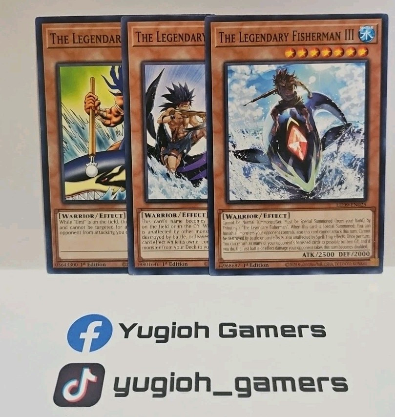 Dive into the world of duelists with "The Legendary Fisherman I II III," a set of three common cards from the beloved Yu-Gi-Oh! TCG. Each card showcases the whimsical charm of the iconic character, offering a splash of nostalgia to your collection. With their light played condition, these cards have weathered the excitement of many games, ready to make a new home in your deck or display. These cards hail from the enchanting '- Yugi -' set, featuring the intricate artwork and strategic gameplay elements that Yu-Gi-Oh! is known for. As a part of the lighter rarity class, they provide a subtle boost to any character ensemble you're constructing. Whether for play or collection, these cards are a must-have for any Yu-Gi-Oh! enthusiast.
