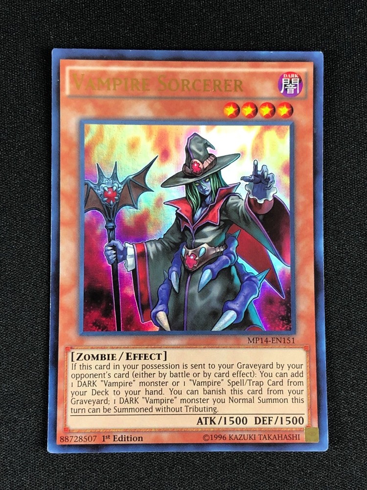YUGIOH VAMPIRE SORCERER MP14-EN151 1ST ULTRA ALL CARDS IN THIS AUCTION ARE IN NEAR MINT TO MINT CONDITION UNLESS STATED OTHERWISE IN THE TITLE. AND, YOU ARE GUARANTEED TO RECEIVE THE CARD NAMED IN THE TITLE. PLEASE NOTE, IF THERE'S MORE THAN 1 COPY AVAILABLE, YOU MAY NOT RECIEVE THE SAME EXACT CARD IN THE PHOTO. HOWEVER, IT WILL BE THE SAME EXACT CARD IN THE TITLE, AND DESCRIPTION! PLEASE CONTACT ME IF THERE IS ANYTHING WRONG WITH YOUR ORDER OR SHIPPING BEFORE LEAVING FEEDBACK. PLEASE GIVE ME A CHANCE TO FIX ANY PROBLEM YOU MAY HAVE. THANK YOU! Shipping Information: Shipping and Handling for this auction will be Free inside the United States - With Tracking! International Shipping Available Through Ebay’s Global Shipping Program. (BUYER IS RESPONSIBLE FOR ANY TAX) **Read the TITLE to see the condition of the cards Before you place a bid. Any damaged cards will be listed as such In The Title (FOR EXAMPLE: Blue Eyes White Dragon LOB-001 - Play/Edgewear). If it doesn't say anything about damage, it is in near-mint to mint condition. If you have any questions, message me Before you place your bid.** RETURN POLICY: RETURNS ARE ACCEPTED IF THE ITEM ARRIVES DAMAGED, OR NOT AS DESCRIBED. RETURNS ARE NOT ACCEPTED FOR BUYERS REMORSE. CHECK OUT MY OTHER AUCTIONS! _gsrx_vers_1516 (GS 9.3 (1516))
