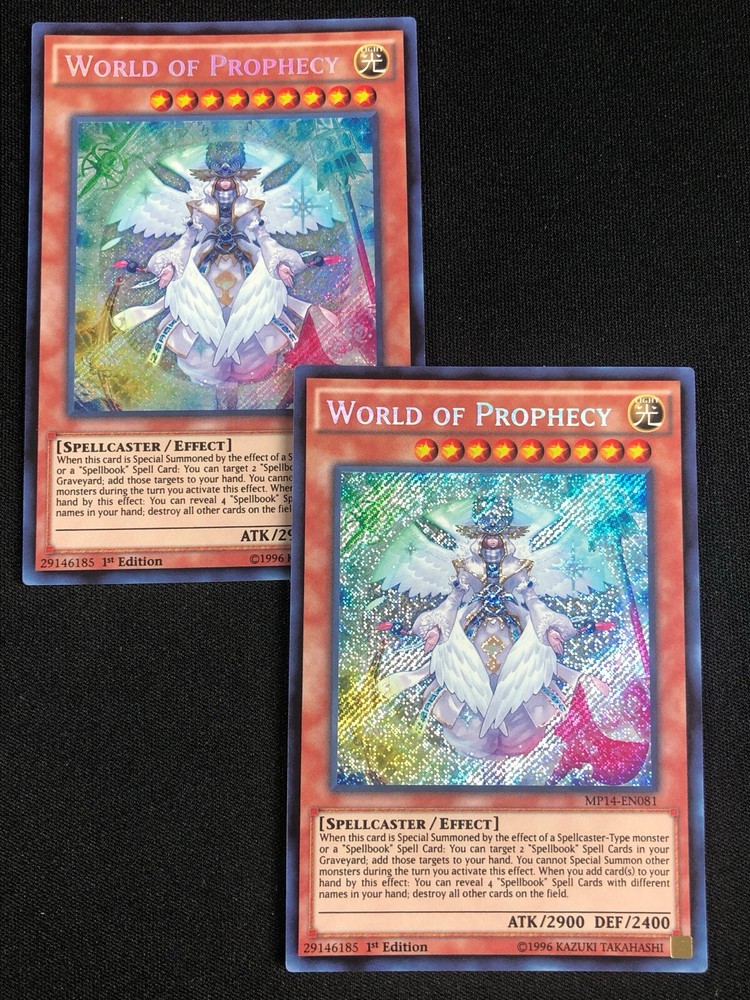 YUGIOH WORLD OF PROPHECY MP14-EN081 1ST SECRET X2 NM ALL CARDS IN THIS AUCTION ARE IN NEAR MINT TO MINT CONDITION UNLESS STATED OTHERWISE IN THE TITLE. AND, YOU ARE GUARANTEED TO RECEIVE THE CARD NAMED IN THE TITLE. PLEASE NOTE, IF THERE'S MORE THAN 1 COPY AVAILABLE, YOU MAY NOT RECIEVE THE SAME EXACT CARD IN THE PHOTO. HOWEVER, IT WILL BE THE SAME EXACT CARD IN THE TITLE, AND DESCRIPTION! PLEASE CONTACT ME IF THERE IS ANYTHING WRONG WITH YOUR ORDER OR SHIPPING BEFORE LEAVING FEEDBACK. PLEASE GIVE ME A CHANCE TO FIX ANY PROBLEM YOU MAY HAVE. THANK YOU! Shipping Information: Shipping and Handling for this auction will be Free inside the United States - With Tracking! International Shipping Available Through Ebay’s Global Shipping Program. (BUYER IS RESPONSIBLE FOR ANY TAX) **Read the TITLE to see the condition of the cards Before you place a bid. Any damaged cards will be listed as such In The Title (FOR EXAMPLE: Blue Eyes White Dragon LOB-001 (HP) If it doesn't say anything about damage, it is in near-mint to mint condition. If you have any questions, message me Before you place your bid.** *PLEASE READ* Ebay's Card Condition Guidelines: (NM) = Near mint or better Comparable to a fresh pack Flaws may include Minor corner and edge wear (LP) = Lightly played (Excellent) Has clearly visible signs of wear Flaws may include Moderate edge chipping Moderate surface scuffing Fuzzy corners (MP) = Moderately played (Very good) Has moderate-to-heavy damage all over Flaws may include Moderate discoloration Moderate creasing Moderate to heavy edge chipping Rounding and soft corner (HP) = Heavily played (Poor) Is extremely worn and displays flaws all over Heavily Played condition cards exhibit signs of heavy wear. Heavily Played condition cards may include cards that have significant creasing, folding, severe water damage, heavy whitening, heavy border wear, and/or tearing. RETURN POLICY: RETURNS ARE ACCEPTED IF THE ITEM ARRIVES DAMAGED, OR NOT AS DESCRIBED. RETURNS ARE NOT ACCEPTED FOR BUYERS REMORSE. CHECK OUT MY OTHER AUCTIONS! _gsrx_vers_1677 (GS 9.8.1 (1677))