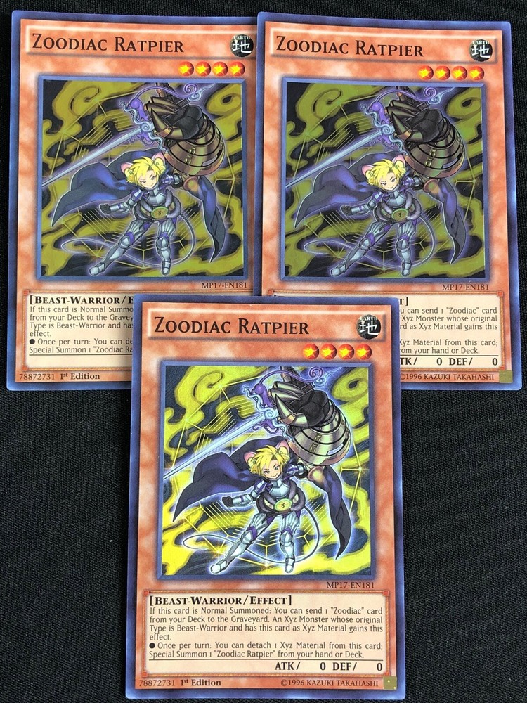 YUGIOH ZOODIAC RATPIER MP17-EN181 1ST SUPER X3 NM ALL CARDS IN THIS AUCTION ARE IN NEAR MINT TO MINT CONDITION UNLESS STATED OTHERWISE IN THE TITLE. AND, YOU ARE GUARANTEED TO RECEIVE THE CARD NAMED IN THE TITLE. PLEASE NOTE, IF THERE'S MORE THAN 1 COPY AVAILABLE, YOU MAY NOT RECIEVE THE SAME EXACT CARD IN THE PHOTO. HOWEVER, IT WILL BE THE SAME EXACT CARD IN THE TITLE, AND DESCRIPTION! PLEASE CONTACT ME IF THERE IS ANYTHING WRONG WITH YOUR ORDER OR SHIPPING BEFORE LEAVING FEEDBACK. PLEASE GIVE ME A CHANCE TO FIX ANY PROBLEM YOU MAY HAVE. THANK YOU! Shipping Information: Shipping and Handling for this auction will be Free inside the United States - With Tracking! International Shipping Available Through Ebay’s Global Shipping Program. (BUYER IS RESPONSIBLE FOR ANY TAX) **Read the TITLE to see the condition of the cards Before you place a bid. Any damaged cards will be listed as such In The Title (FOR EXAMPLE: Blue Eyes White Dragon LOB-001 - Play/Edgewear). If it doesn't say anything about damage, it is in near-mint to mint condition. If you have any questions, message me Before you place your bid.** RETURN POLICY: RETURNS ARE ACCEPTED IF THE ITEM ARRIVES DAMAGED, OR NOT AS DESCRIBED. RETURNS ARE NOT ACCEPTED FOR BUYERS REMORSE. CHECK OUT MY OTHER AUCTIONS! _gsrx_vers_1536 (GS 9.4 (1536))
