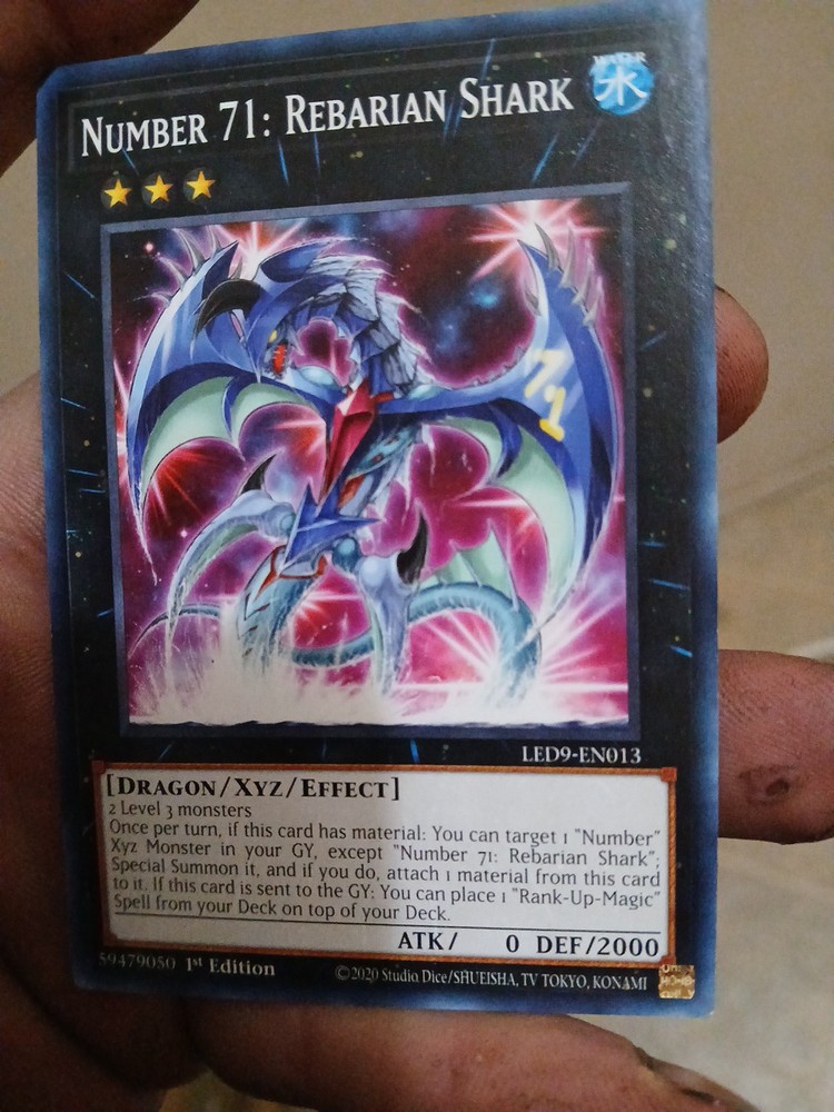 | Card Text | 2 Level 3 monsters Once per turn: You can target 1 "Number" Xyz Monster in your GY, except "Number 71: Rebarian Shark"; Special Summon it, and if you do, attach 1 material from this card to it. If this card is sent to the GY: You can choose 1 "Rank-Up-Magic" Spell from your Deck and place it on top of your Deck. |
