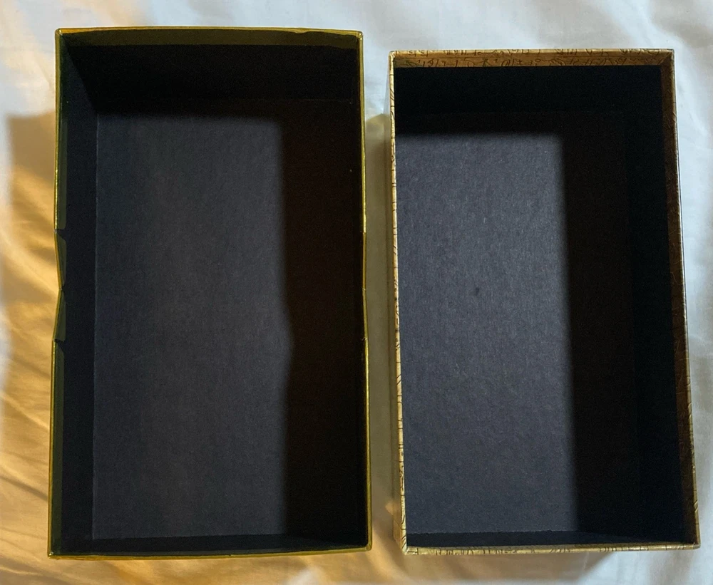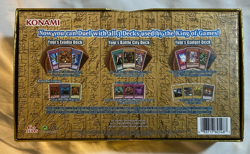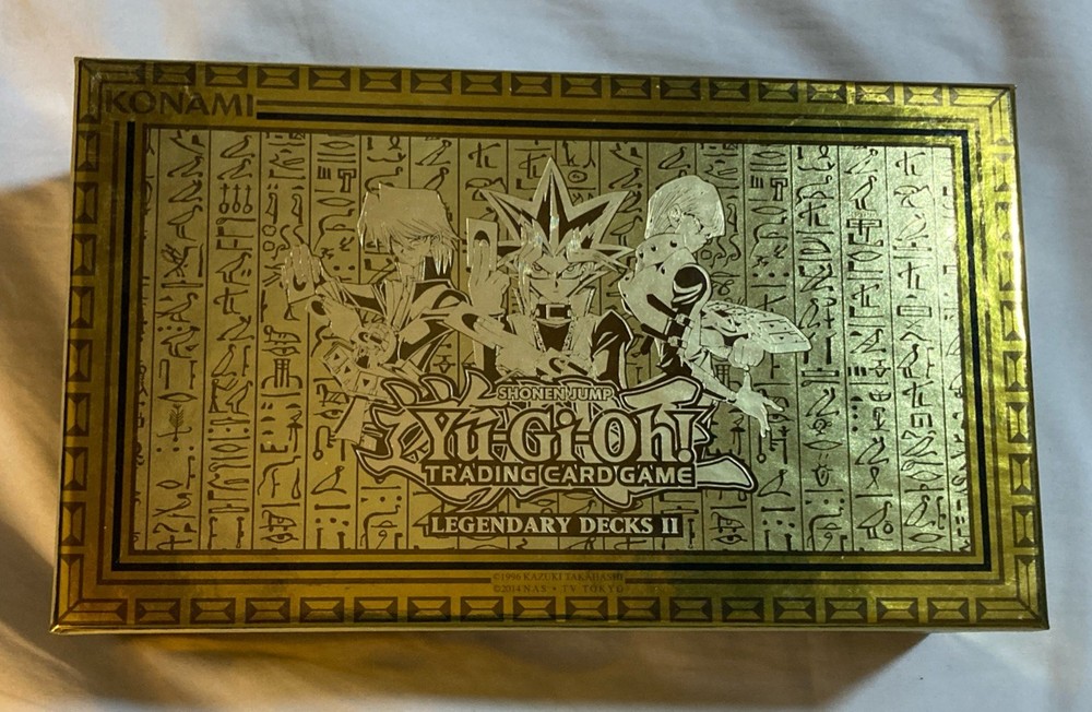 The product is an empty box from the Yu-Gi-Oh! Trading Card Game, specifically designed for storing collectible cards from the Yu-Gi-Oh! TCG. The box features gold foil accents and is themed around the legendary decks of Yugi and Kaib. Perfect for collectors looking to organize and display their Yu-Gi-Oh! card collection, this empty box adds a touch of prestige to any collection. EMPTY BOX