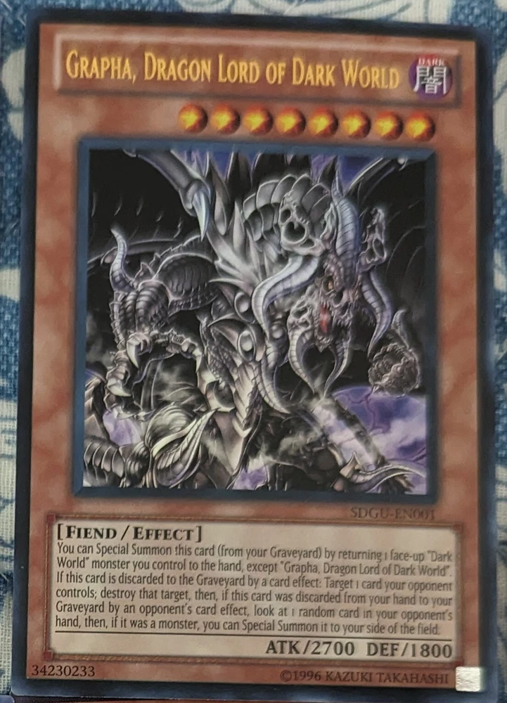 Cards being sold: Gadarla, the Mystery Dust Kaiju - BROL-EN074 (Brothers of Legend) Magician's Robe - TDIL-EN018 (The Dark Illusion) Altergeist Primebanshee - MP18-EN135 (2018 Mega-Tin Mega Pack) Mystic Tomato - SKE-021 (Starter Deck: Kaiba Evolution) Aromaseraphy Rosemary - INOV-EN047 (Invasion: Vengeance) Odd-Eyes Vortex Dragon - LEDD-ENC27 (Legendary Dragon Decks) Phantom of Chaos - GLAS-ENSE1 (Gladiator's Assault Special Edition) Grapha, Dragon Lord of Dark World - SDGU-EN001 (Structure Deck: Gates of the Underworld)
