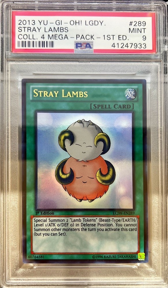This listing is for one First Edition PSA 9 MINT Graded Yu-Gi-Oh! Card. 'Stray Lambs' (LCJW-EN289) ULTRA RARE, FIRST EDITION, from LEGENDARY COLLECTION 4: JOEY'S WORLD series from the year 2013. PSA Certification Verification # 41247933 This card is great for anyone looking to complete their Joey Wheeler registry set. He played this card often and to great effect on the hit television show. This particular card condition is cataloged by Professional Sports Authenticators and verifiable on their website. I encourage you to go on PSA's website and check via their "PSA Certification Verification" feature to see that, as of the publishing of this listing, there are very few cards available for each of these respective gradings and cards. Please also note that graded cards are hard to come by as PSA, the corporation, had to significantly halt input in order to complete their huge backlog of orders. Newly graded cards will be hard to come by and existing cards are here to stay. Only one card, this card, holds the PSA 9 MINT grade, and none others graded higher. I ship safely and securely with tracking number and plenty of bubble wrap (insurance and signature confirmation will be included upon request or for orders above $500 value). Domestic US shoppers SAVE on Shipping! Purchase three or more of my items, and your shipping is automatically adjusted to FREE. That is right, just add the items you want to your eBay shopping cart and pay for your three or more items all at once. The shipping discount will be applied automatically. International shipping available only through eBay's Global Shipping Program. Thank you for looking. Any questions? Please ask me. Bid with confidence!