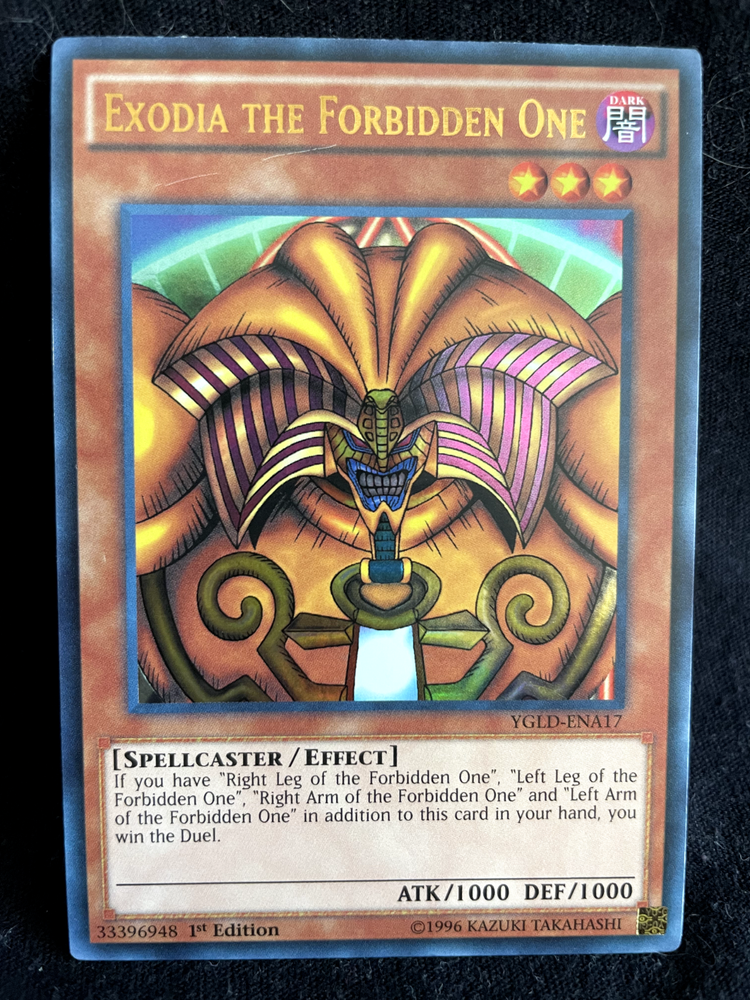 Dive into the world of strategic duels with the iconic Yu-Gi-Oh! TCG Legendary Decks I Exodia The Forbidden One set. This collectible monster card, YGLD-ENA17-21, is a must-have for enthusiasts seeking to enhance their gameplay or collectors aiming to complete their compilation. Featuring the legendary Yami Yugi, this ultra-rare card is a standout piece from the first edition run.Exodia The Forbidden One comes complete, allowing you toHarness its unique abilities to outmaneuver opponents in your next battle. With its striking artwork and powerful in-game presence, this card is an essential addition to any Yu-Gi-Oh! TCG collection.