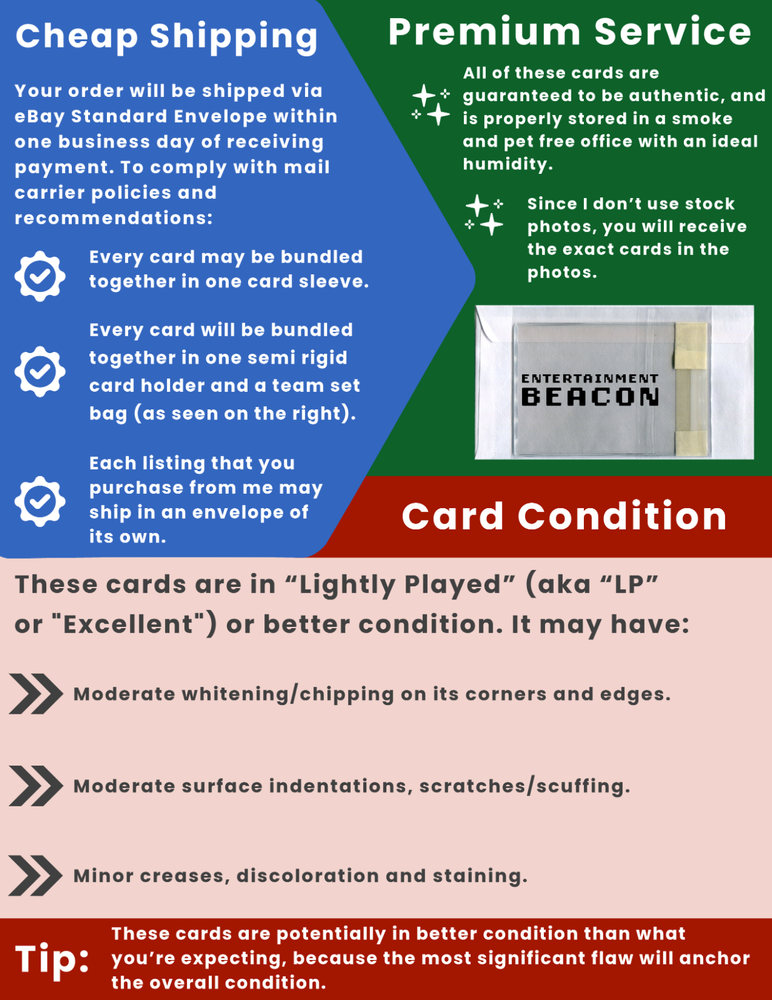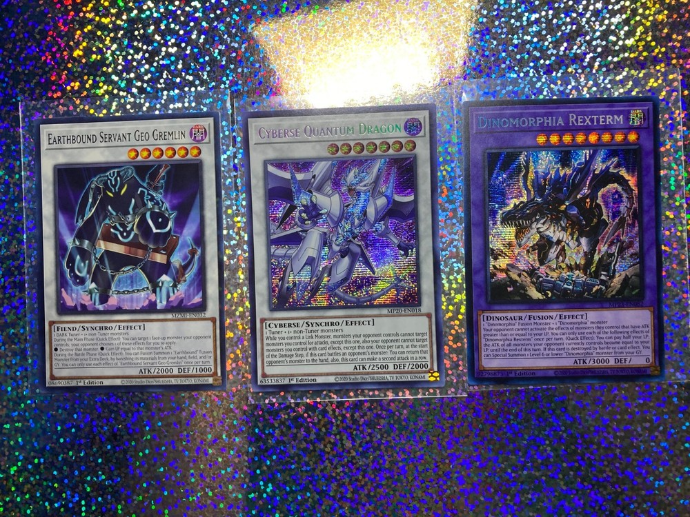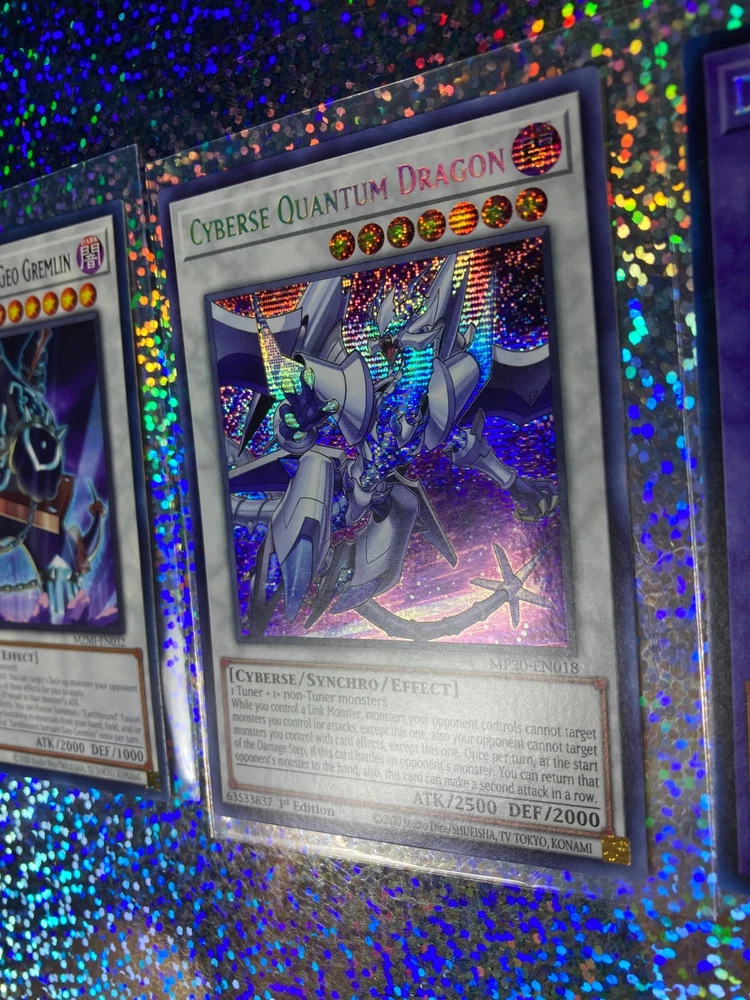 Save money with this custom bundle and cheap shipping. Item Description This custom bundle includes three (3 ) Yu-Gi-Oh! cards in "Lightly Played" (aka "LP" or "Excellent") condition. It may have moderate whitening/chipping on its corners and edges; moderate surface indentations, scratches/scuffing; and minor creases, discoloration, and staining: Main product (detailed under "item specifics"): One (1) 2020 1st Edition Tin of Lost Memories Prismatic Secret Rare MP20-EN018 Cyberse Quantum Dragon . Additional product (not detailed under "item specifics"): One (1) 2023 1st Edition 25th Anniversary Tin: Dueling Heroes Mega Pack Prismatic Secret Rare MP23-EN082 Dinomorphia Rexterm. One (1) 2024 1st Edition Maze of Millennia Rare Regular MZMI-EN032 Earthbound Servant Geo Gremlin ( not holographic ). For clarification, this is not a random mixed card lot. You will receive the exact cards shown in the images provided in this listing. These cards are stored in a pet and smoke-free location with an archival-quality card sleeve. Tip: The most significant flaw anchors the overall condition, and the manufacture recommends this product to kids ages 8+. If you have any questions, please feel free to contact me anytime. Shipping and Handling Your order will ship in a semi-rigid card holder and protective bag (to meet strict requirements) via eBay Standard Envelope (a USPS First-Class Mail service for a standard white envelope ) within one business day of receiving payment. This service can only be tracked in your eBay account. Because this service is limited to envelopes that are 1/4 of an inch or thinner, orders exceeding this amount will ship in more than one envelope. I reserve the right to upgrade your shipping service as needed. I offer a shipping discount for listings with a shipping charge if you pay for all of these listings in one transaction. Please refer to the "Shipping" tab to evaluate the base shipping charge and this discount. Payments Please complete the transaction within 5 days of committing to purchase this item. For a list of payment methods that eBay accepts, please refer to "payment details." Returns You may return every item from this listing within 30 days of delivery to receive a refund based on your Bid or Buy It Now price. Please note that shipping and handling charges are not refundable, and the buyer is responsible for all return shipping and handling expenses. Thank you for viewing this listing.