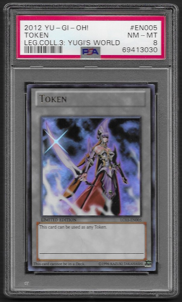 Yu-Gi-Oh! 2012 Token Legendary Collection 3 Yugi's World-#EN005 PSA 8 Item is listed as per the grade assigned by the third-party grader and pricing is based on that grade (PSA/SGC/BGS/etc.). Graded card cases may come chipped, scratched and scuffed. I do not offer partial refunds or returns because of the case condition or non-agreement of assigned grade. Please see the provided pictures for the condition of the card or item, pictures of the front are provided for your review. Please reach out with any questions or scan requests prior to purchase.