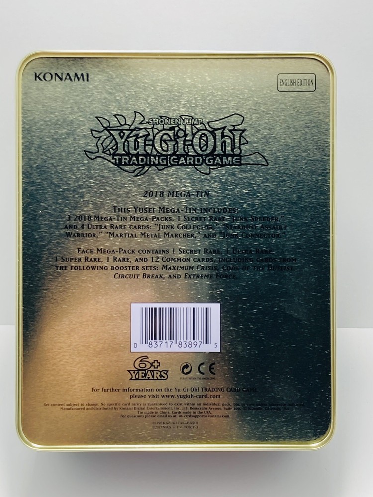 YuGiOh 2018 Mega Tin Yusei Fudo "EPMTY NO CARDS JUST TIN" No Cards X1 - English Fast Shipping Shipping Terms * Will ship your order off within 1 business day of purchase . Singles will be shipped in a top loader. Purchases made on Saturday and Sunday will be shipped off the following business day. * Please add all items to your cart prior to checkout to ensure your items are mailed together . * VERY IMPORTANT - PLEASE READ! Check your shipping address prior to check out to be sure that we are sending it to the correct address! Please be sure to include apartment or unit #?s when applicable. Payment Terms * Please pay within 3 days of purchasing your item(s) to avoid an Unpaid Item case. * Will appreciate it if you please leave feedback when you receive your item, and I will leave feedback as well. Contact me if anything is wrong with your order before leaving negative feedback, so I can have the chance to make your order right. Thank You * I believe your satisfaction will lead to our success of being the #1 provider of Yugioh cards on Ebay . * If you have any questions please do not hesitate to contact me and I will respond as soon as possible . Thank you for your time and business .