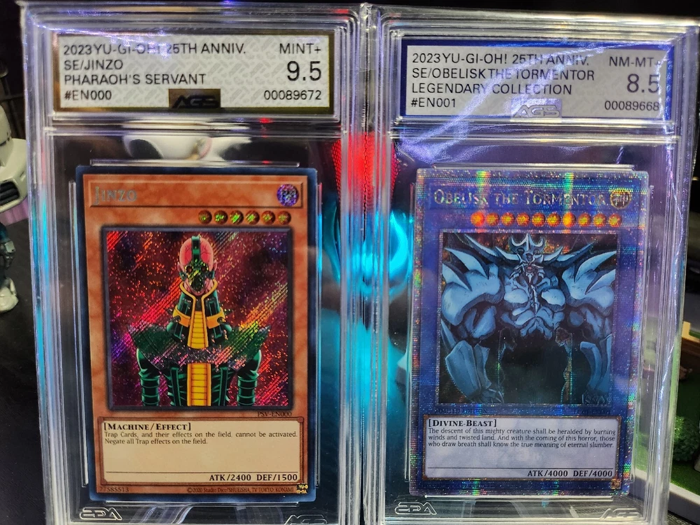 YuGiOh 25th Anniversary JINZO 9.5 EN000 & OBELISK THE TORMENTOR EN001 Legendary Collection Quarter Century