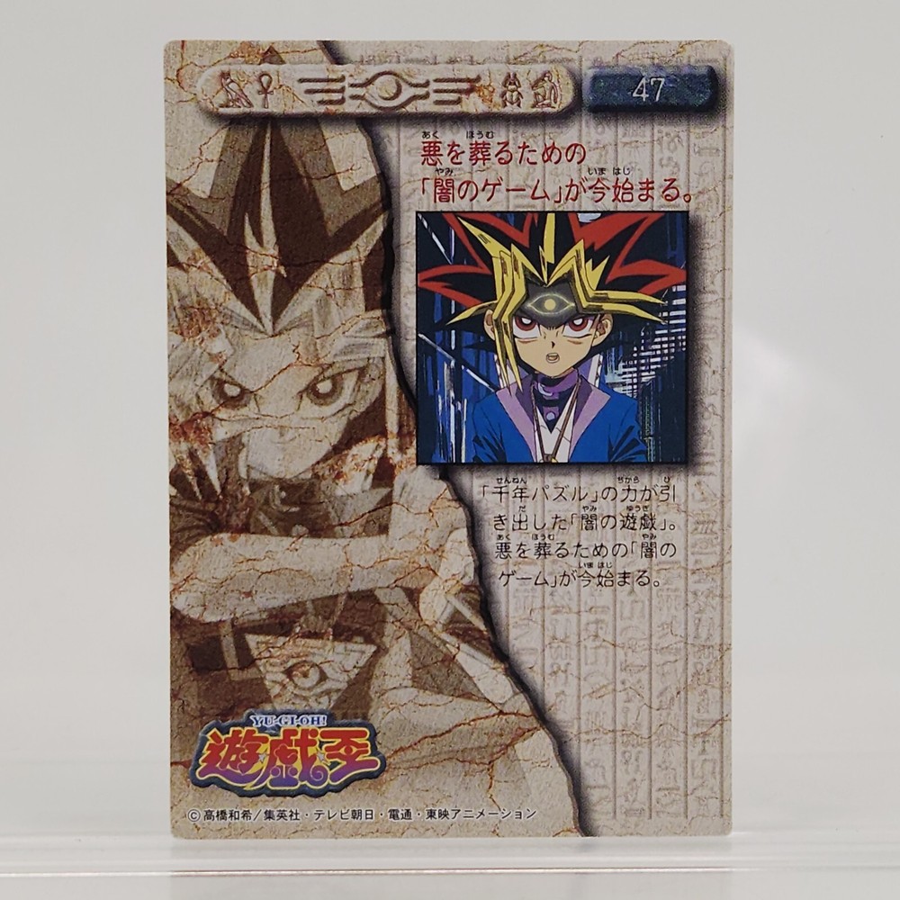 π΄ Yu-Gi-Oh! #47 Yami Yugi - Rare Bandai Toei Amada Silver Foil Card (1998) π A gem from the early Yu-Gi-Oh! franchise, this Bandai Toei Amada Silver Foil Card features the legendary Yami Yugi ! Dated 1998 , this card is a highly sought-after piece, perfect for Yu-Gi-Oh! fans and card collectors alike. Key Features: π¦ Condition : Good - The card is well-maintained with only light wear , retaining its collectible quality and vintage allure. π Rare Silver Foil Design : This #47 Silver Foil Card showcases the iconic character Yami Yugi from the Yu-Gi-Oh! series in a beautiful silver foil finish by Bandai Toei Amada . π΄ Vintage Collectible : An authentic piece from 1998 , making it a great collectible for fans of the original Yu-Gi-Oh! series. Shipping Information: βοΈ Free Air Shipping : Enjoy free air shipping, with an average delivery time of 10-14 business days. For an additional $5, you can add a tracking number and signature requirement for secure delivery. π Expedited Options : Contact the seller for faster shipping options if needed. Additional Notes : πΈ Photos of the cardβs design and any wear can be provided upon request. π¬ Any questions or need more information? Feel free to reach out to the seller. Complete your Yu-Gi-Oh! collection with this rare Yami Yugi Silver Foil Card from Bandai Toei Amada !