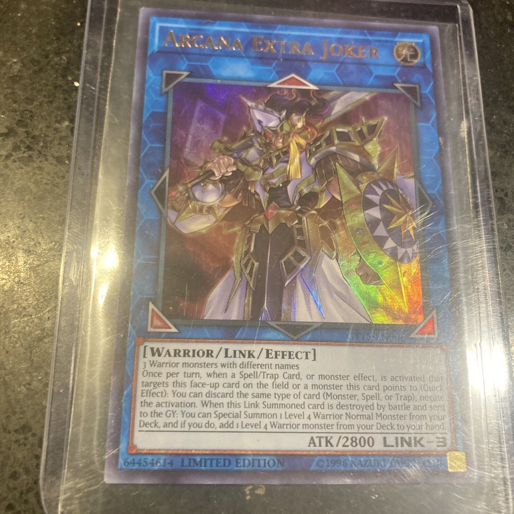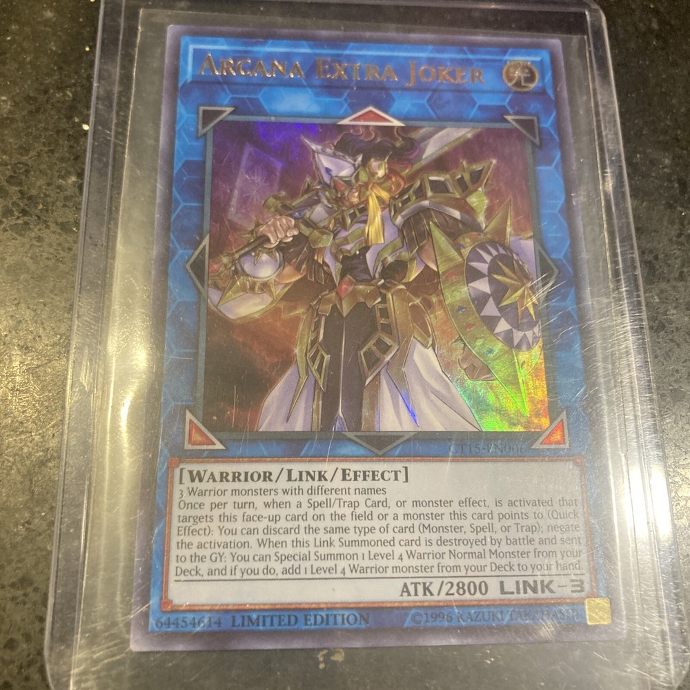 Yu-Gi-Oh! Arcana Extra Joker CT15-EN006 Limited Ultra Rare Ships Same Day. Comes in a new protective sleeve and a hard card protector