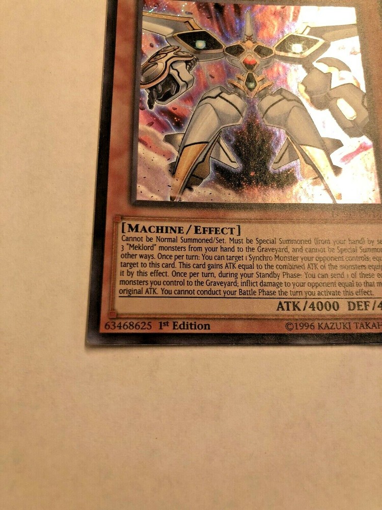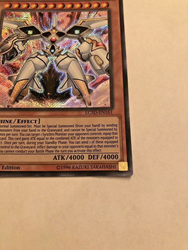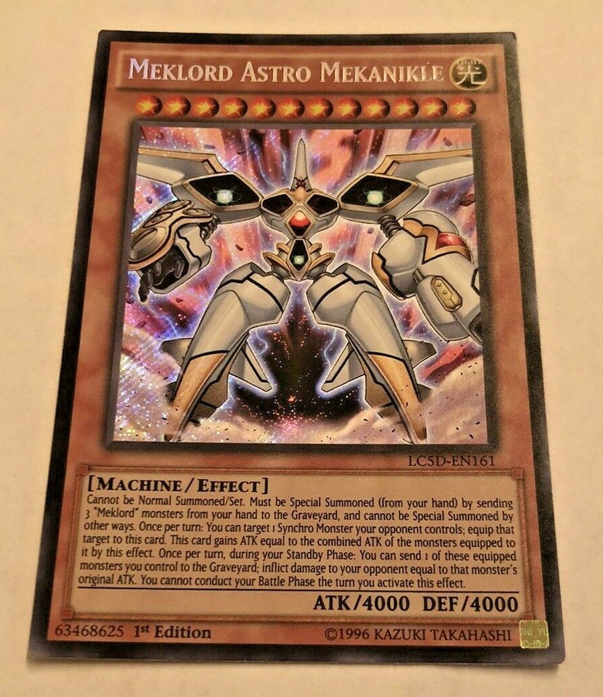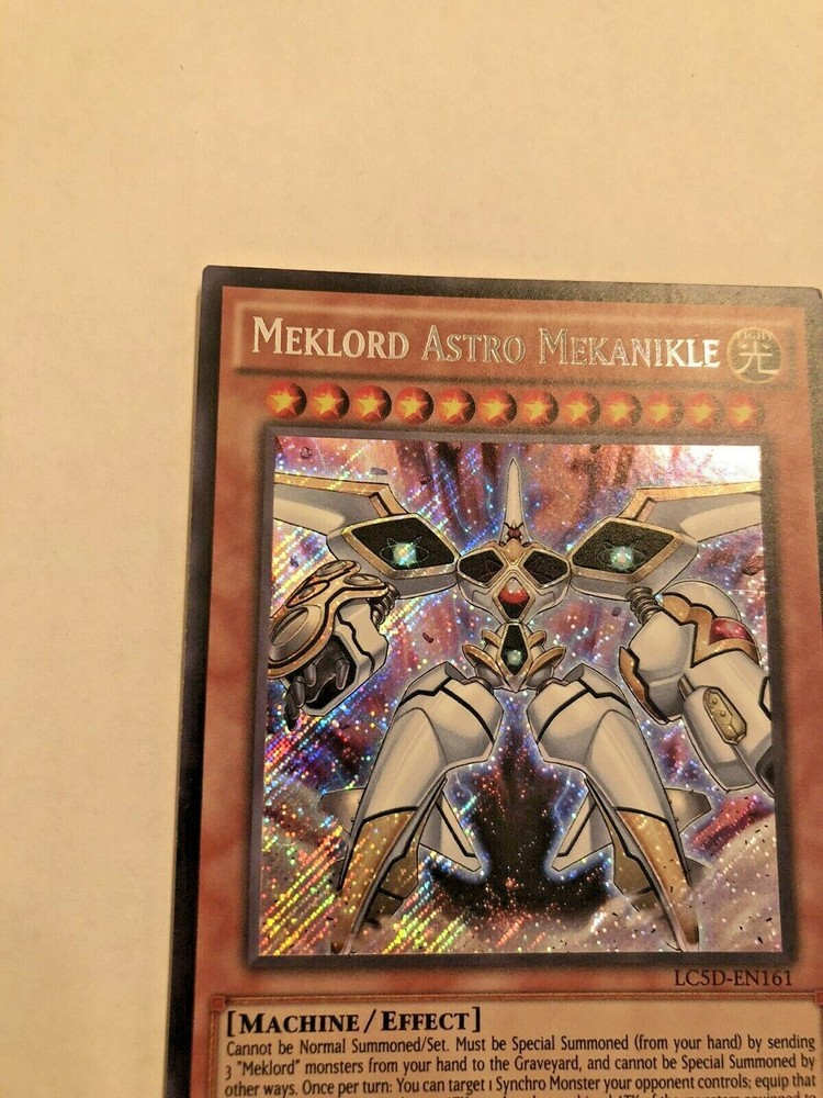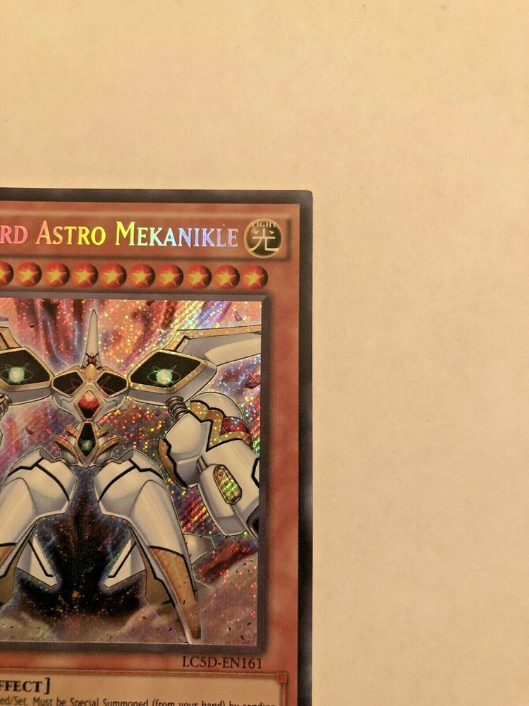 This Japanese version of Meklord Astro Mekanikle is a rare find for collectors of the Yu-Gi-Oh! trading card game. This card, from the Legendary Collection 5D's set, features a Light-colored Machine monster with Secret Rare rarity and 1st Edition status. The card is in Near Mint condition and has a Regular finish. It is a highly sought-after addition to any Yu-Gi-Oh! collection. The card comes from the English Language version of the game and is manufactured by Konami. It is part of the Yu-Gi-Oh! character family and has the Card Type of Effect.