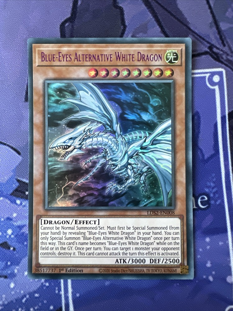 This Yu-Gi-Oh! collectable card features the Blue-Eyes Alt White Dragon, a powerful creature with a rarity of Ultra Rare. The card belongs to the "Yugi" set and is in near mint or better condition, making it a valuable addition to any collection. The dragon is coloured in purple, adding to its uniqueness and making it stand out among other cards. It is part of the Yu-Gi-Oh! TCG game. Although it is ungraded, the quality is excellent, as indicated by the "Near Mint or Better" condition stated in the original listing. Don't miss your chance to own this incredible card and add it to your collection today!