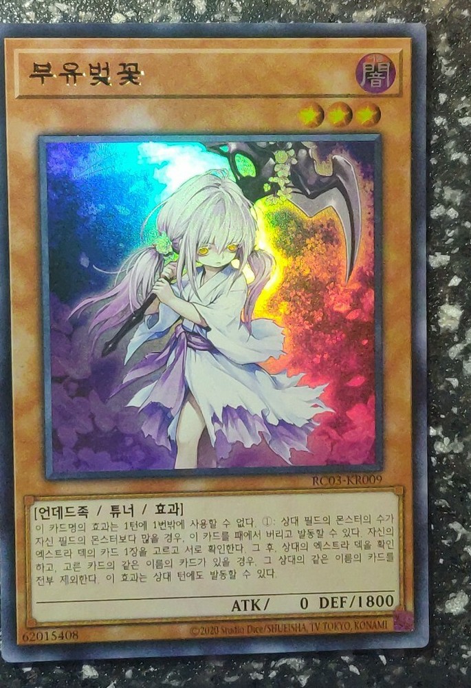 ULTRA RARE HOLOGRAPHIC version of Ghost Reaper & Winter Cherries! VERY BEAUTIFUL AND UNIQUE HOLOGRAPHIC PATTERN ON THE CARD, PLEASE LOOK AT THE PHOTOS! ABSOLUTELY A MUST HAVE Card for all collectors! The card is in Mint / NM condition. Condition is New. Shipped with USPS First Class Package. 100% AUTHENTIC BUY WITH CONFIDENCE This card is in the Korean language. Please note that this is not the English version of the card. You will receive the card in the photos in my listing in a safe protective hard case. Thank you for looking at my listing.