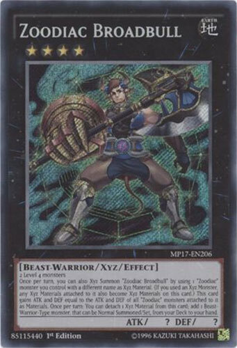 Yu-Gi-Oh MP17-EN206 ZOODIAC BROADBULL Secret Rare Holo NM Mint Condition