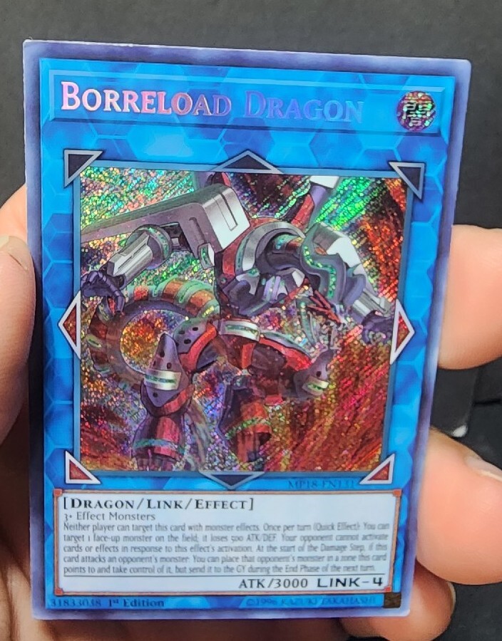 Hello, fellow collectors and players! Welcome to our humble store! Today, we are offering: A SECRET RARE BORRELOAD DRAGON Condition: LIGHT PLAY. GRADING can be a little subjective, so please look carefully at the pictures before deciding to buy. And now for the good stuff: π€ PICTURE IS OF THE ACTUAL CARD YOU ARE BUYING!!!π π F R E E S H I P P I N G!!! π Items are mailed the same the or the next business day! πAlways a free HOLOGRAPHIC CARD with all Yugioh card sales! π Safely Packed. πPlease check our other listings for more cool cards and other interesting stuff π 1 more thing, I tribute summon Dark Ruler Ha Des and equip it with united we stand, declare attack, no response? Activate scapegoats, replay now the Ruler attacks for 6450!!! ππ Yu-Gi-Oh! Collector's Borreload Dragon MP18-EN131 1st Ed. +Bonus.