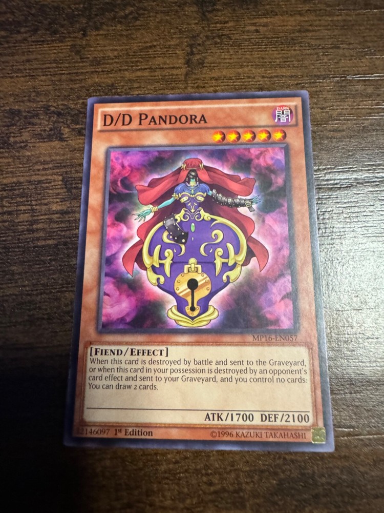 This rare and highly sought-after card, Yu-Gi-Oh! D/D Pandora MP16-EN057, is a must-have for any serious collector or player of the Yu-Gi-Oh! TCG. With an attack power of 1700 and defense/toughness of 2100, this effect card is a true game changer. Featuring 1st edition technology and a stunning design, this card is a perfect addition to any collection. The card is in English language and manufactured by Konami. Don't miss your chance to own this amazing card from the 2016 Mega-Tins Mega Pack set.