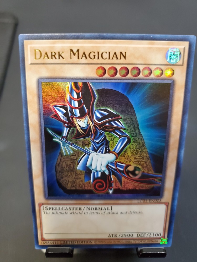 Dark Magician LC01-EN005 is from the Legendary Collection . The card is in Near Mint condition! Shipping: I will be mailing this card through a #6 envelope. The card will be sleeved, placed in a Toploader, blue tape sealing the top of the Toploader, inserted in a cellophane bag, and wrapped around with paper. If you have any questions regarding the card or shipping, please feel free to message me anytime!