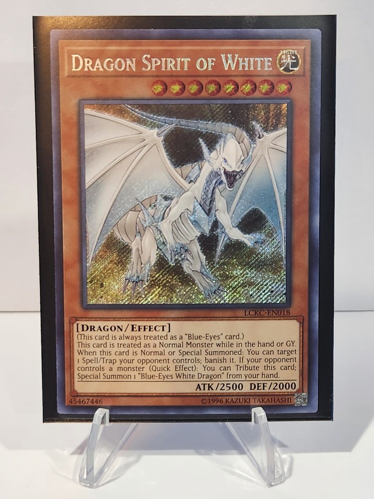 The Yu-Gi-Oh! Dragon Spirit of White card is a highly sought-after collectible in the Yu-Gi-Oh! TCG. This Secret Rare card from the Legendary Collection Kaiba Mega Pack set, manufactured in 2018 by Konami, features a Japanese card size and is made of quality card stock. With a beautiful foil finish and in English language, this card is a valuable addition to any player or collector's deck. The card's unique design and rarity make it a desirable piece for fans of the game.