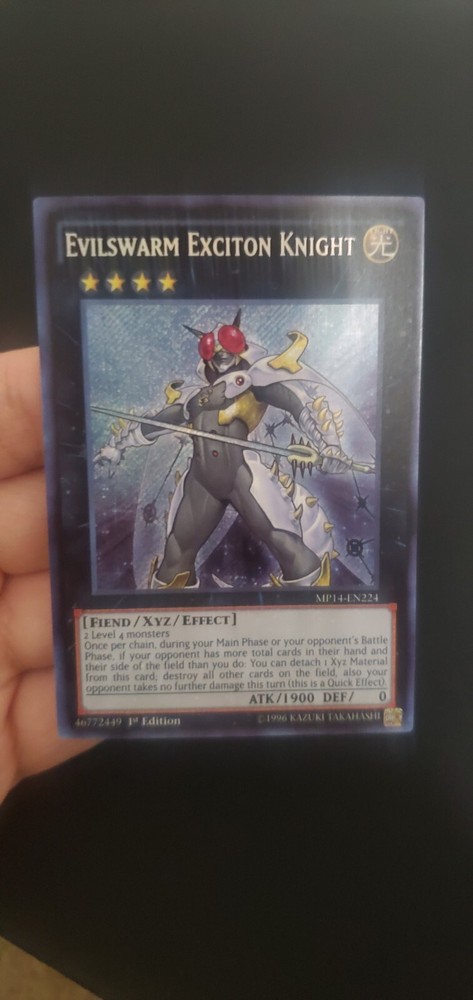 This rare Yu-Gi-Oh! TCG card is a must-have for any collector. The Evilswarm Exciton Knight, from the - Yugi - set, is a 1st Edition Secret Rare card that will stand out in any collection. The card features impressive artwork and unique abilities that make it a powerful addition to any deck. The attributes of this card include Light color and the MTG:Color is Secret Rare. The card name, Evilswarm Exciton Knight, is sure to impress any fan of the Yu-Gi-Oh! TCG. Don't miss out on the opportunity to add this rare card to your collection.