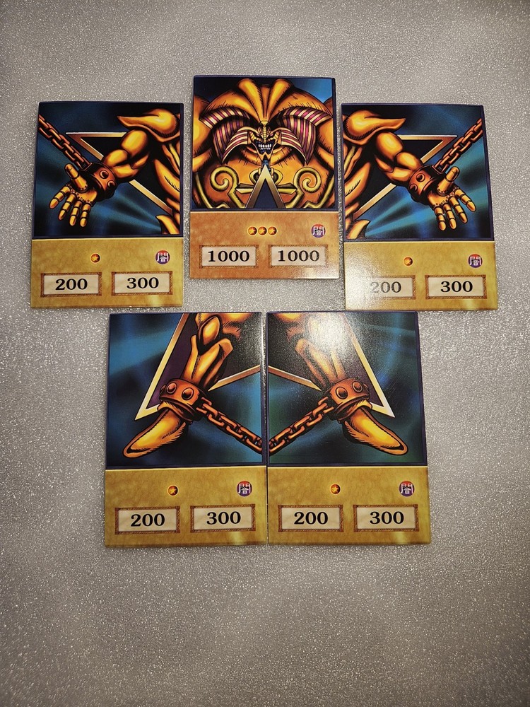 Full set of Exodia The Fobidden One based on the art design seen in the original Yu-Gi-Oh anime.