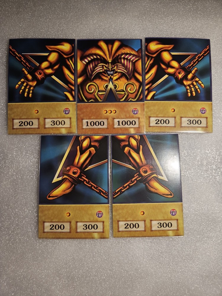 Full set of Exodia The Fobidden One based on the art design seen in the original Yu-Gi-Oh anime....